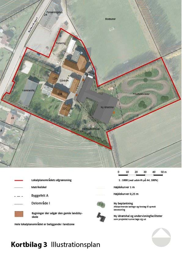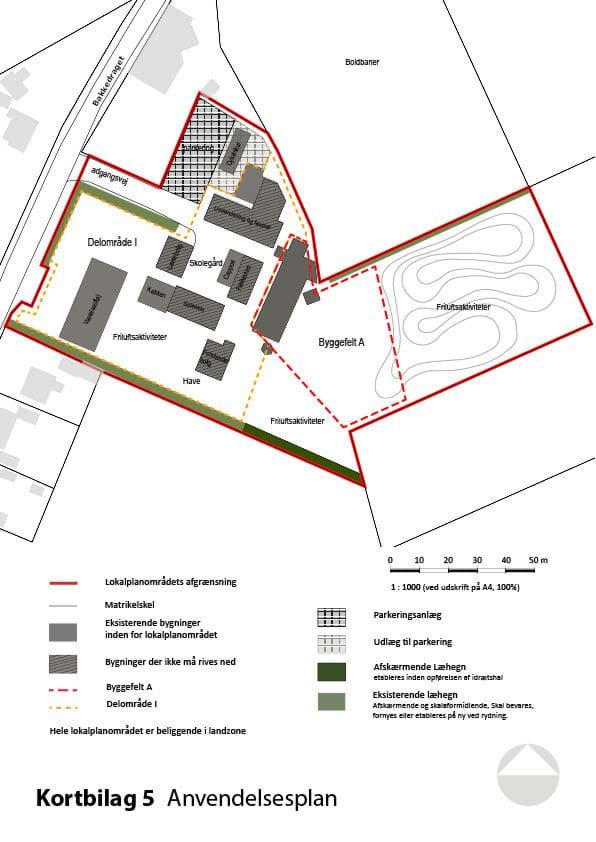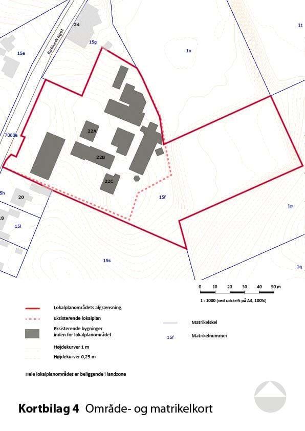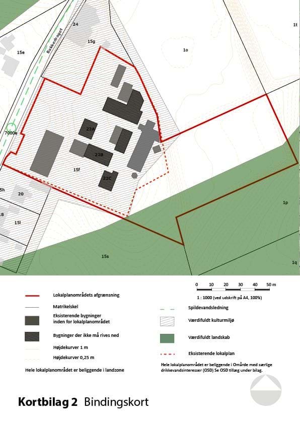 Kortbilagene herunder hører til lokalplanens bestemmelser og er juridisk bindende i forhold til de fremtidige forhold i planområdet.