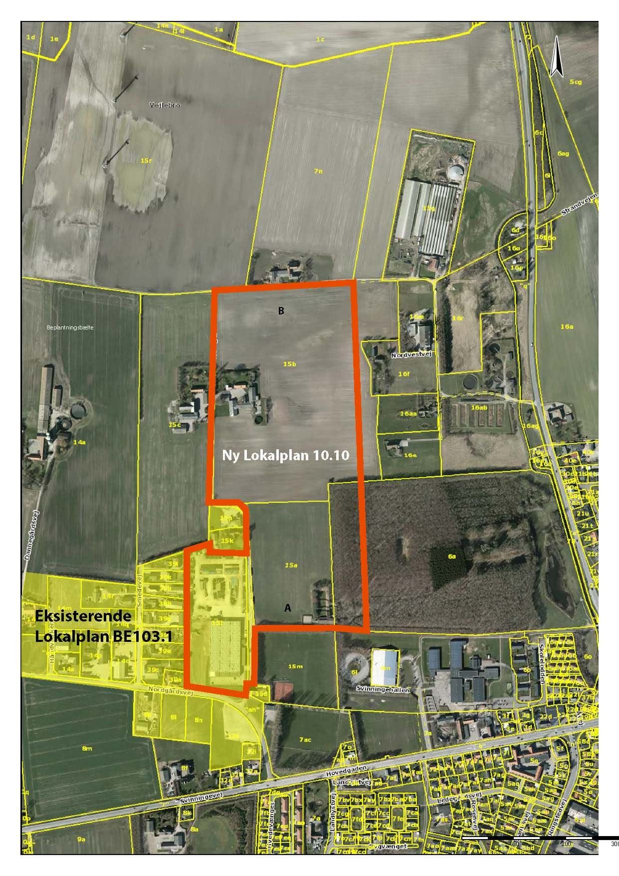 Afgrænsning af nyt lokalplanområde 10.10, samt eksisterende Lokalplan BE103.1