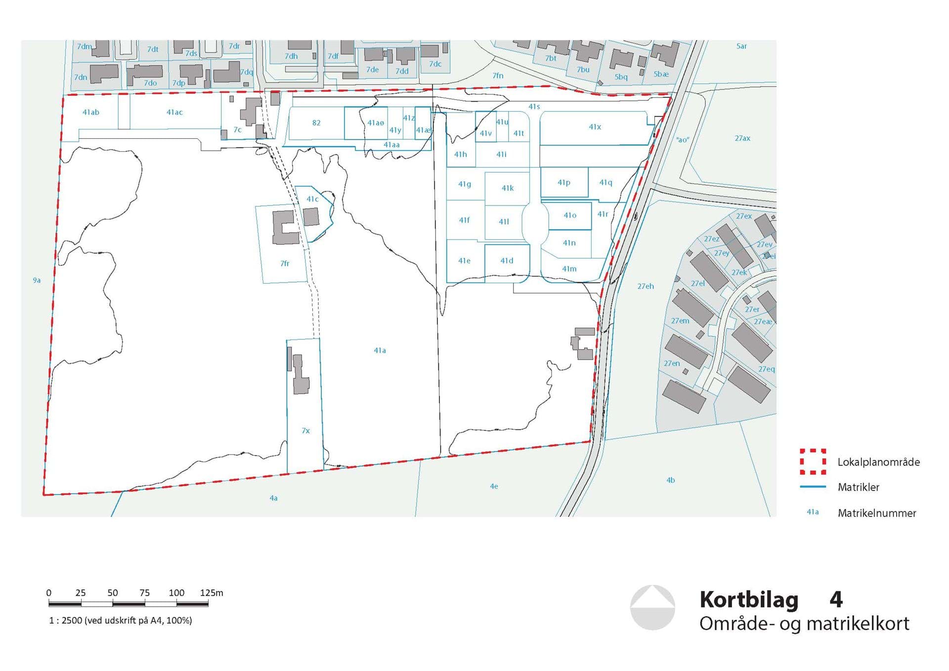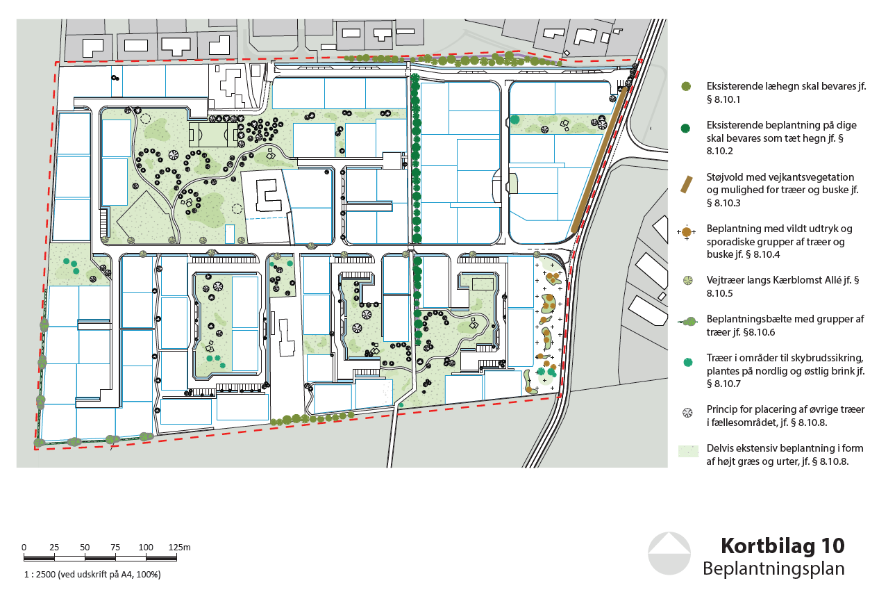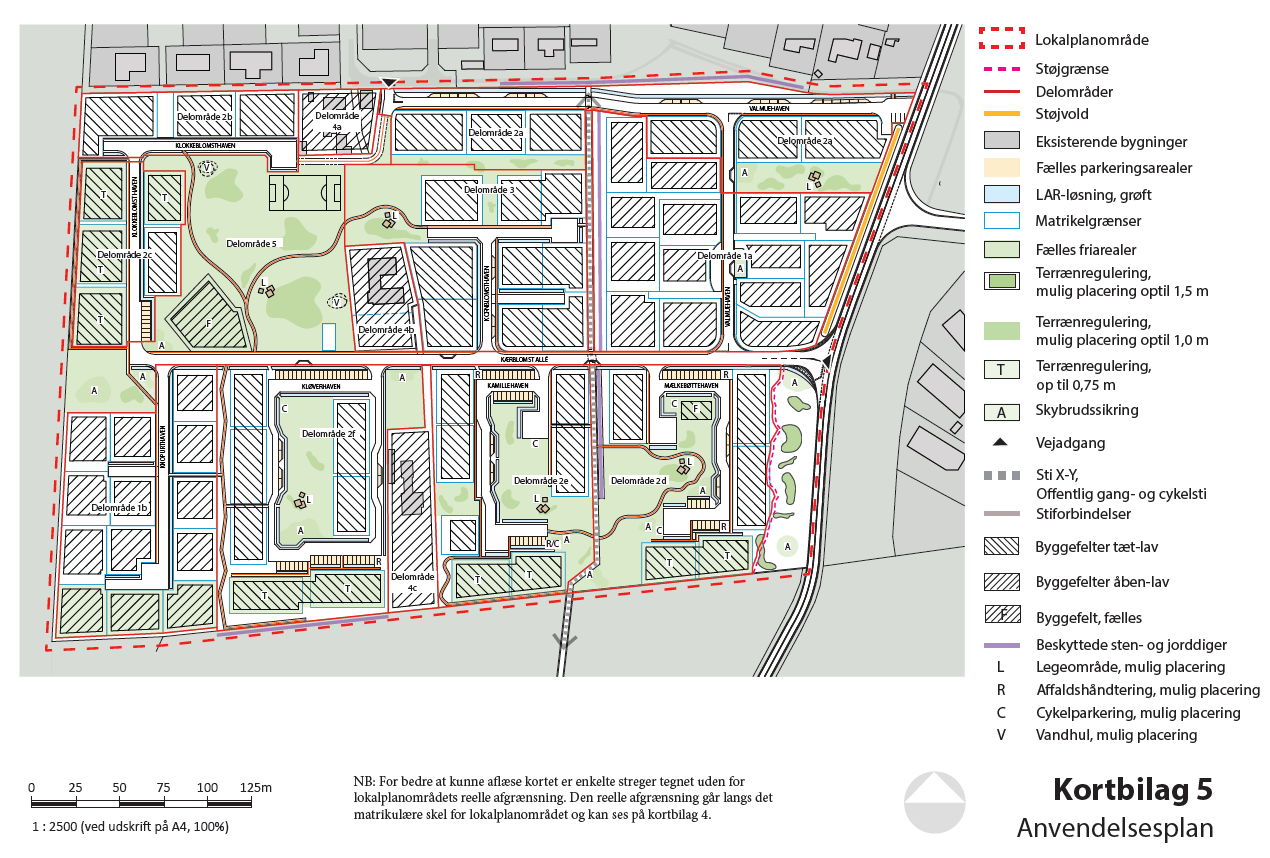 Kortbilagene herunder hører til lokalplanens bestemmelser og er juridisk bindende i forhold til de fremtidige forhold i planområdet.
