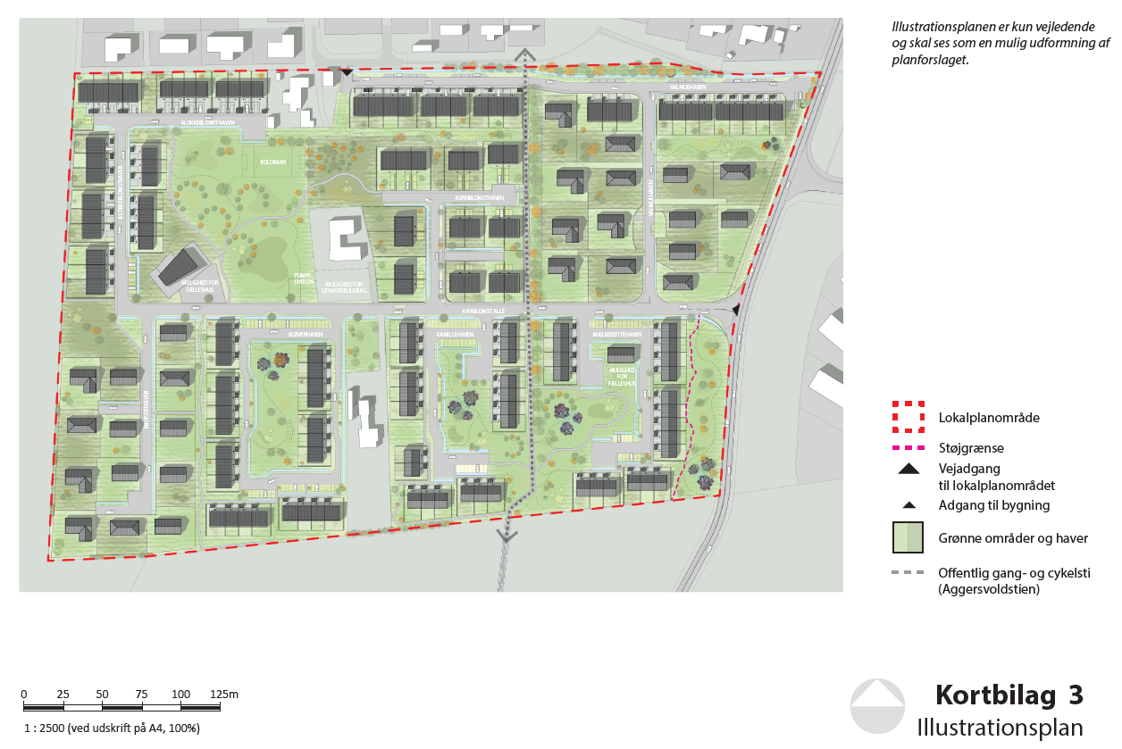 Kortbilagene er vejledende og skal ses som en mulig udformning af lokalplanen.