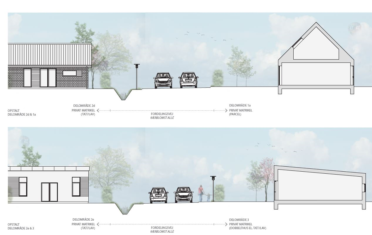 Den nye planlægning muliggør boligbebyggelse i én til to etager med en maksimal højde på 8,5 meter. Nedenfor er angivet snittegninger, som eksempler på byggeriet og forholdet til de nærmeste omgivelser.