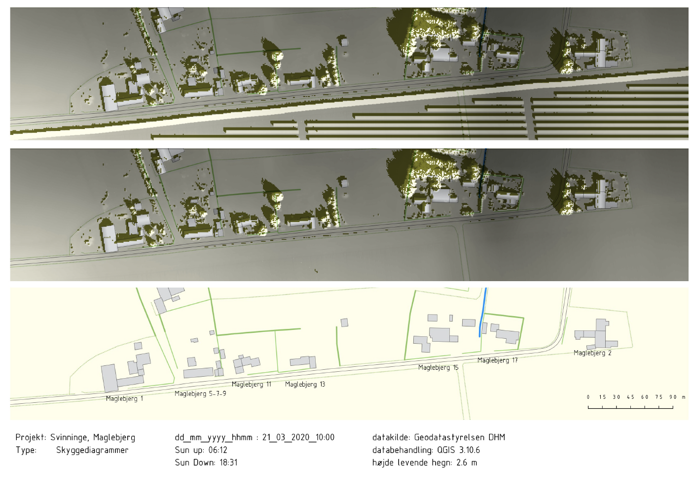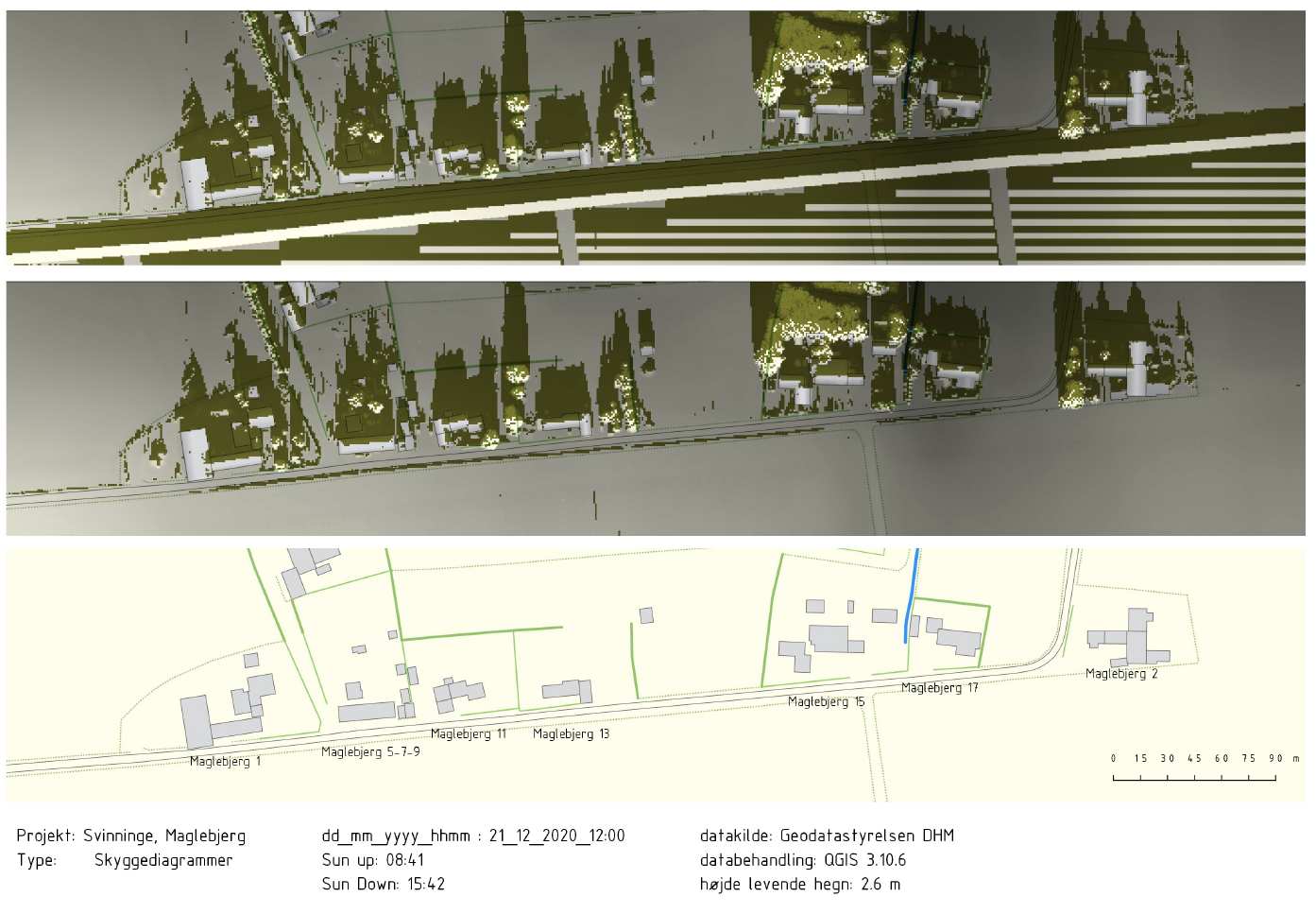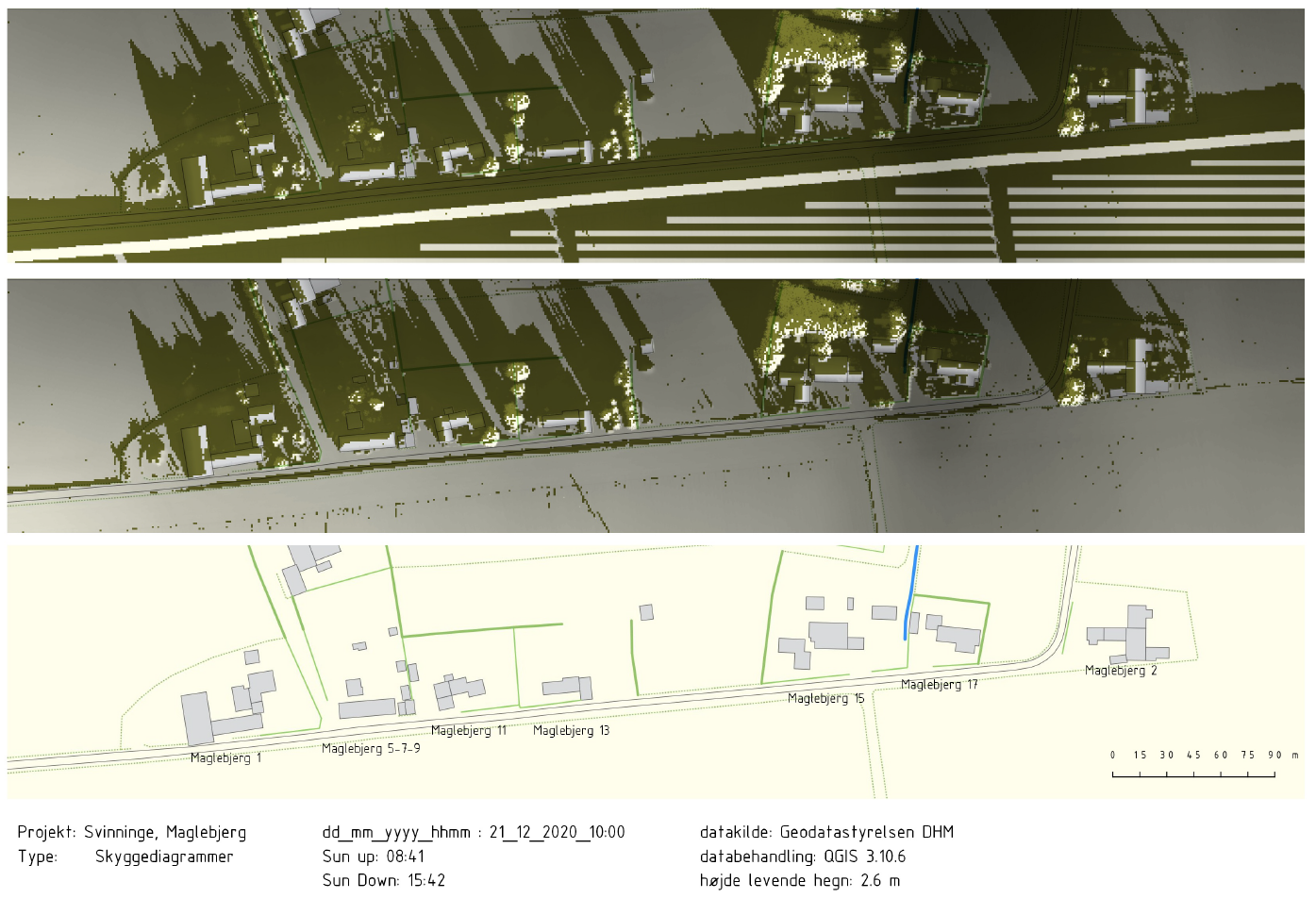Formiddagssituation den 21. dec. kl. 10.00. Skyggerne rammer midt på formiddagen grundene nord for Maglebjerg.