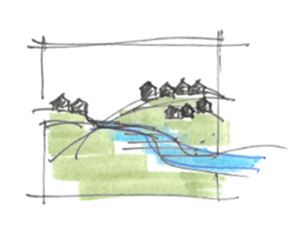 Boligerne skal placeres så det skrående terræn udnyttes bedst muligt. Dette kan gøres ved at friholde de lavtliggende områder for bebyggelse og anvende områderne til friarealer og håndtering af regnvand.