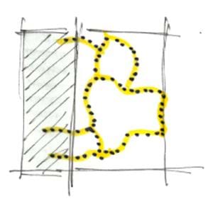 Det nye boligområde bliver en udvidelse af byen mod øst og det åbne land. For at markere overgangen skal bebyggelsesplanen ”flette” med landskabet gennem grønne kiler, der tillader kik ind til boligerne og kik ud til landskabet og hvor der ikke er en skarp afgrænsning mellem by og land.
