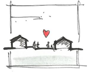 Planen skal skabe de bedste rammer for at styrke fællesskabet – både i de nære omgivelser, på tværs af boligområderne og i relation til de omkringliggende naboområder. En mulig løsning kunne være at udforme en boligstruktur, hvor ankomsten til boligerne orienteres mod et fællesområde, f.eks. en fælles vej eller plads.