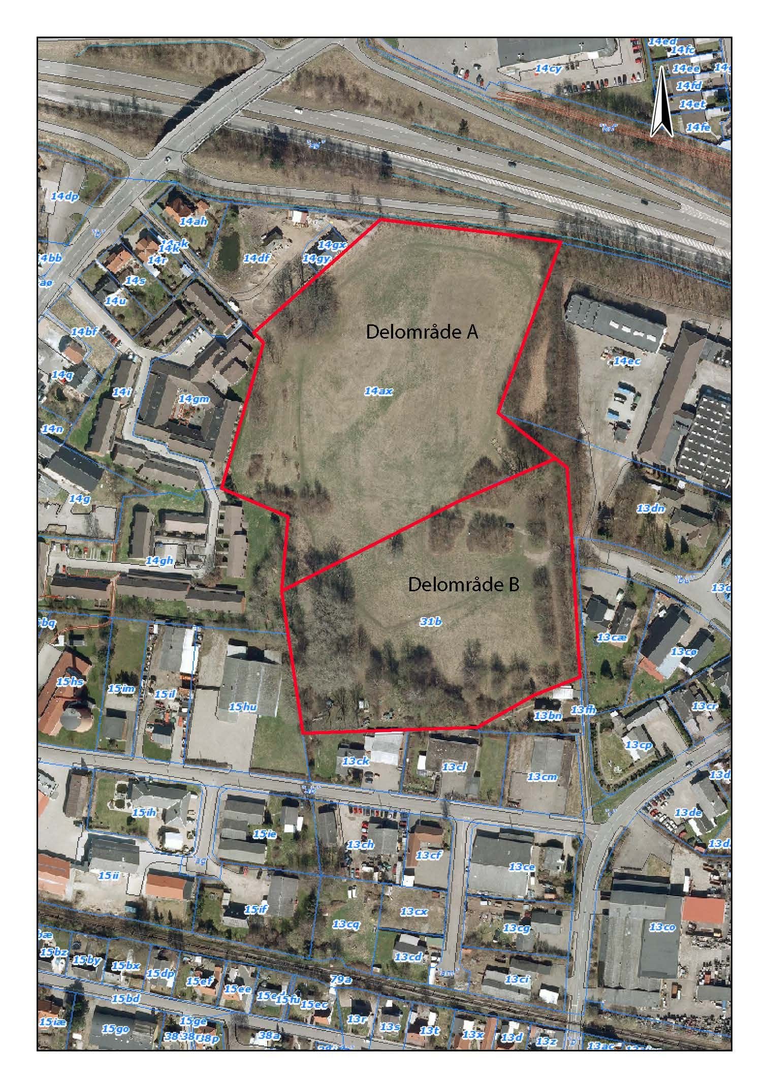 - Delområde B. Den sydlige del af området, udlægges til offentligt formål, herunder rekreativt, grønt område.
