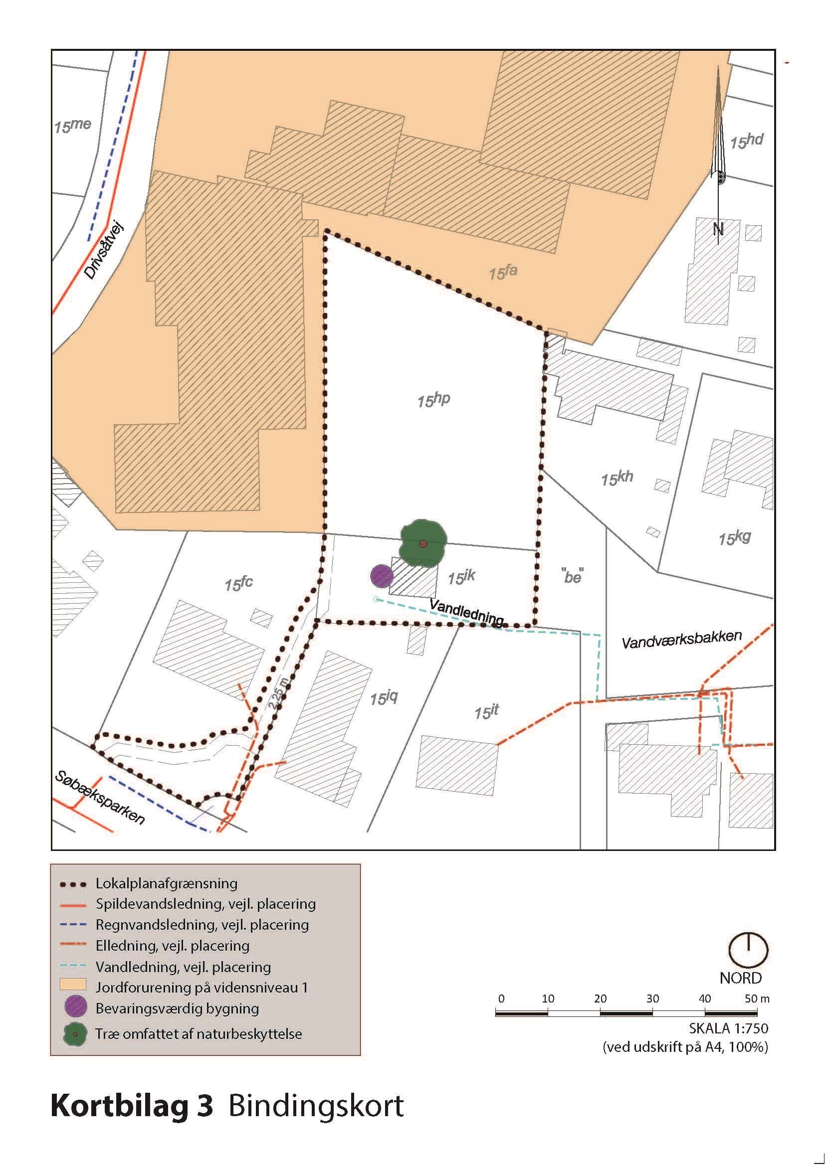 Kortbilagene herunder hører til lokalplanens bestemmelser og er juridisk bindende i forhold til de fremtidige forhold i planområdet.