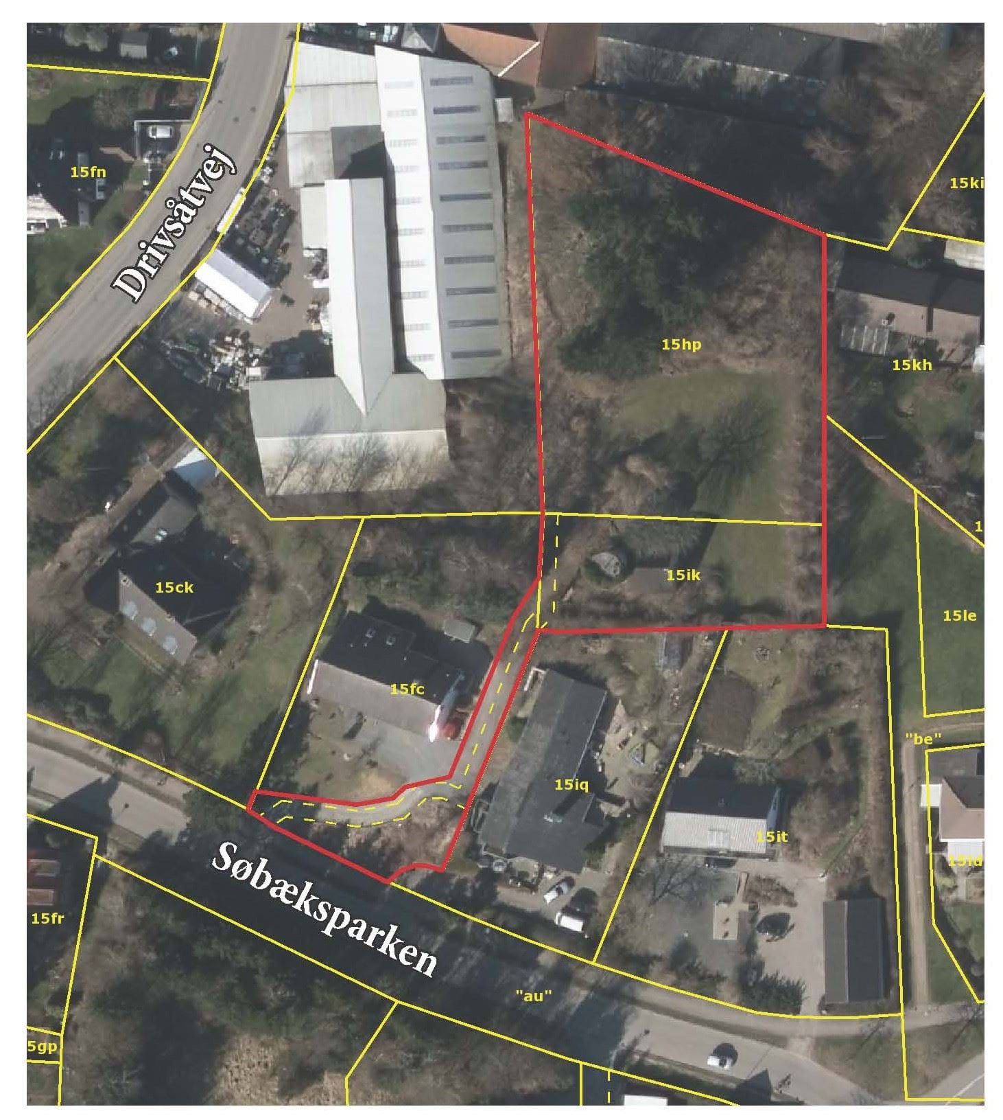 Matr.nr. 15hp står i dag ubenyttet hen som grønt areal med henholdsvis græsareal samt træer og buskads på den nordlige og vestlige del. På matr.nr. 15ik er det gamle vandtårn beliggende, som i en del år har været ude af funktion. Arealerne har i de seneste 18 år været privatejede af nuværende grundejer. En del af matr. nr. 15fc, der indeholder vejareal, indgår også i lokalplanen.
