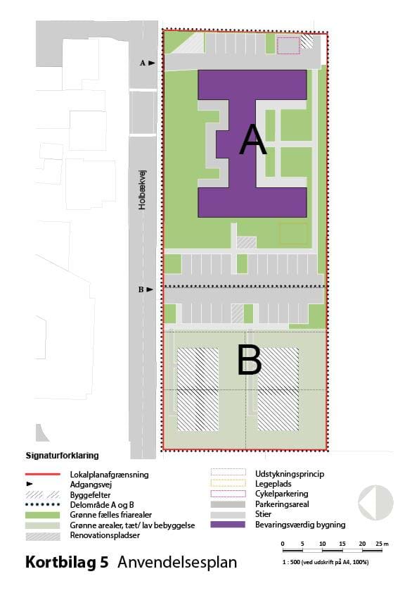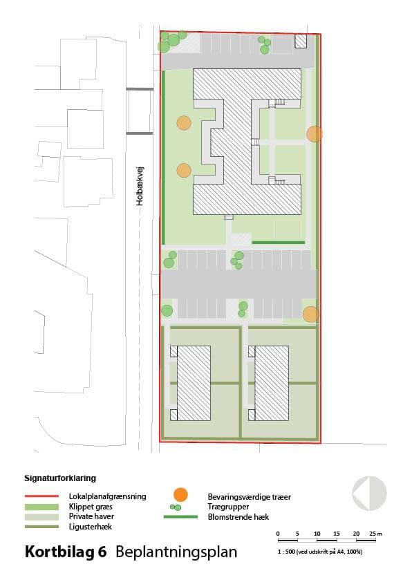Kortbilagene herunder hører til lokalplanens bestemmelser og er juridisk bindende i forhold til de fremtidige forhold i planområdet.