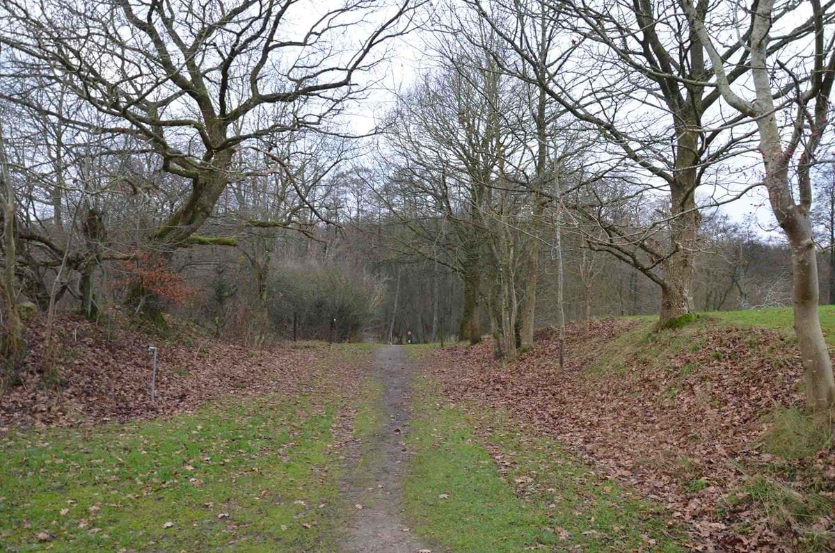 llustration 1: Adgangsvej A-A fortsætter som en sti ind i Delhoved Skov