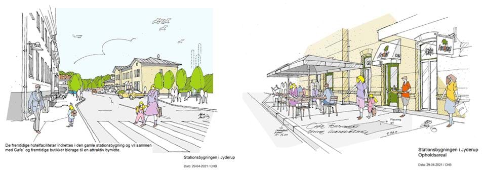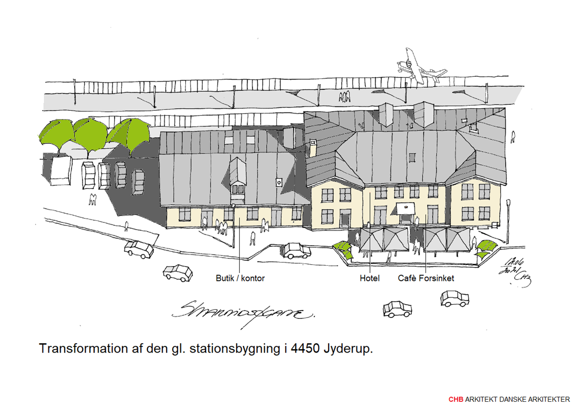 De seks eksisterende parkeringspladser indenfor planområdet fastholdes. Lokalplanen giver ikke mulighed for en markant ændret anvendelse eller udvidelse af den eksisterende bygning, hvorfor der ikke vurderes at være et øget parkeringsbehov end det eksisterende. Naturpark Åmosen og Istidsruten forventes at tiltrække en del cykel- og vandreturister til Jyderup. Jyderup ligger centralt og stationsnært, hvilket gør Jyderup til en oplagt indgang til Naturpark Åmosen. Turister som besøger Jyderup Station forventes i højere grad end ellers at vælge grønne rejseformer som cykel og tog, hvorfor behovet for parkering ikke vurderes at blive øget.