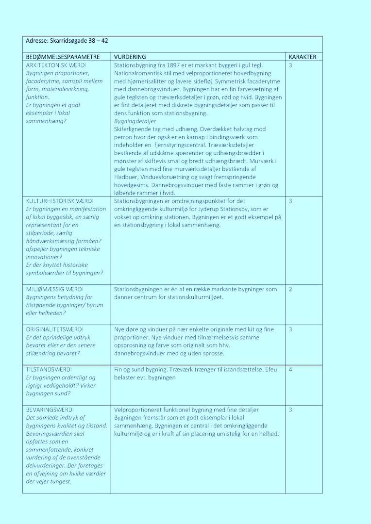 Lokalplanen er udarbejdet på baggrund af en SAVE-registrering af Stationsbygningen. SAVE er en metode til at kortlægge og vurdere byers og bygningers arkitektoniske, kulturhistoriske og landskabelige værdier. Med SAVE metoden vurderes bygninger ud fra en gennemgang af bygningens arkitektonisk værdi, kulturhistorisk værdi, miljømæssig værdi, originalitetsværdi og tilstandsværdi. Læs SAVE - vurderingen her.