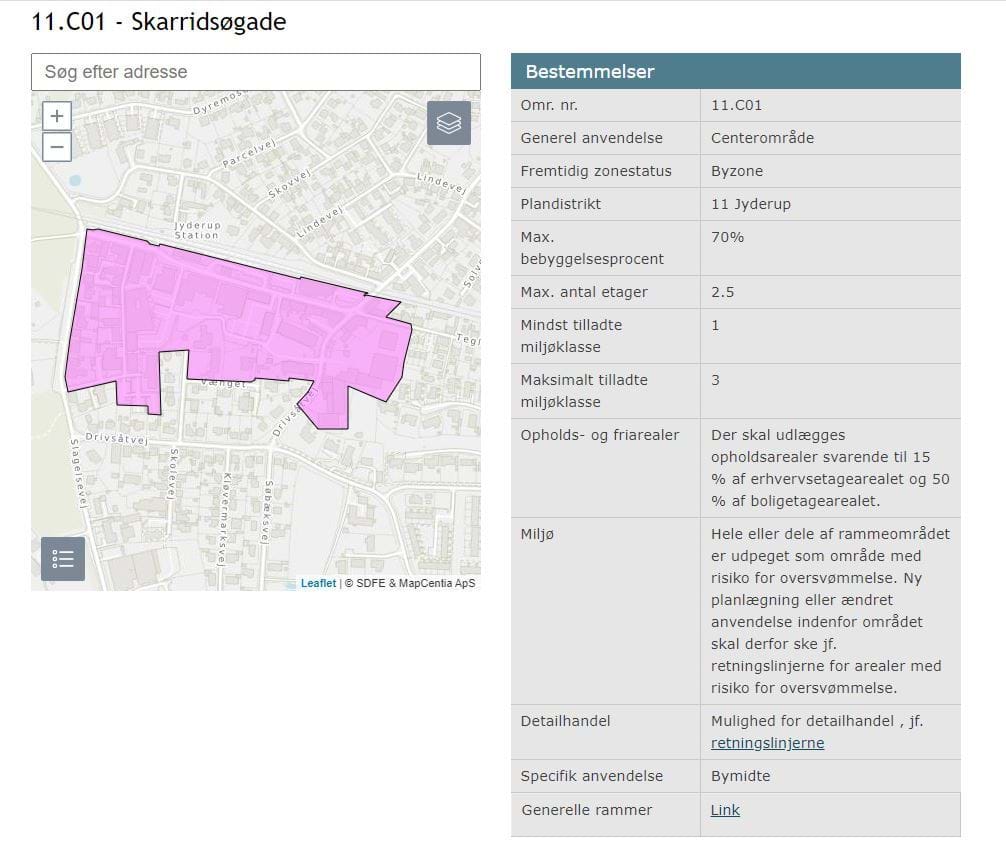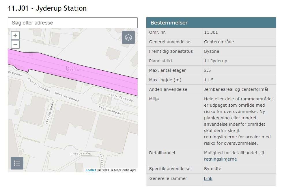Lokalplanområdet er beliggende i Jyderup Bymidte med en samlet rummelighed på 13.800 m2. Det vurderes at der er tilpas rummelighed til at der kan etableres 200 m2 butik i stueetagen.