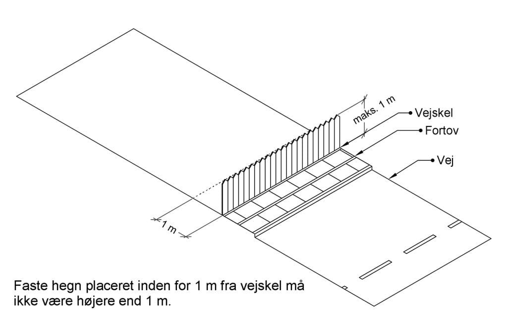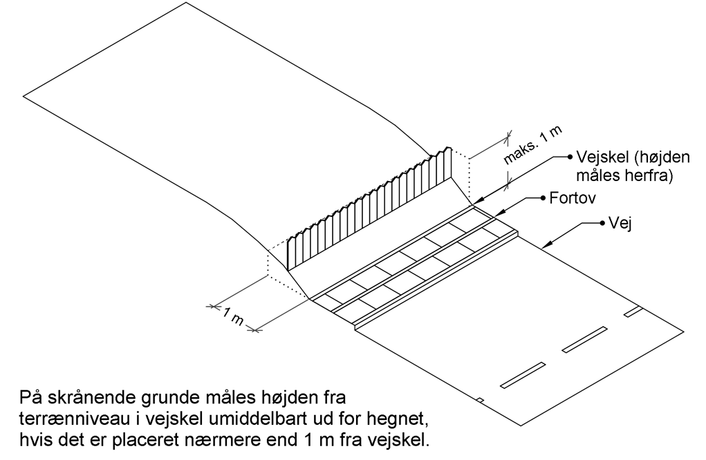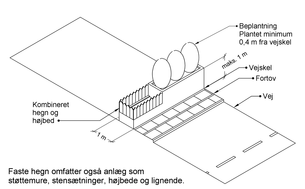 Levende hegn, eksempelvis i form af hække eller buske, skal plantes mindst 40 cm fra vej inde på grunden for at sikre, at det levende hegn får plads til at gro – uden at gro ud over vej eller fortov. I forbindelse med levende hegn kan der desuden opføres låger - eksempelvis i træ eller metal - med en højde på op til 1,80 m, selvom de står nærmere end 1 m fra vej.