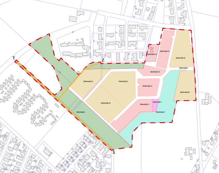 - Delområde 1 (1a, 1b, 1c, 1d ) kan anvendes til åben/lav boligbebyggelse i form af parcelhuse.