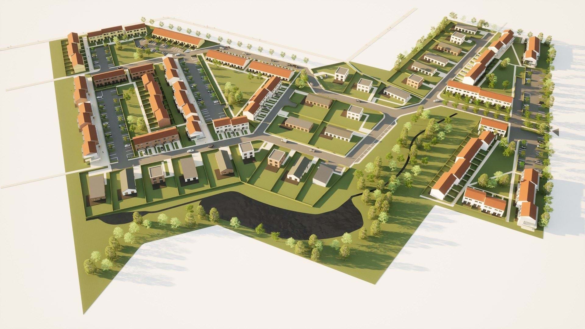 Disse 3D modeller af området kan bl.a. give et overordnet indtryk af skala, bygningshøjder mv. i området. I områder til rækkehuse og etageboliger er der nære fællesområder ved boligerne.