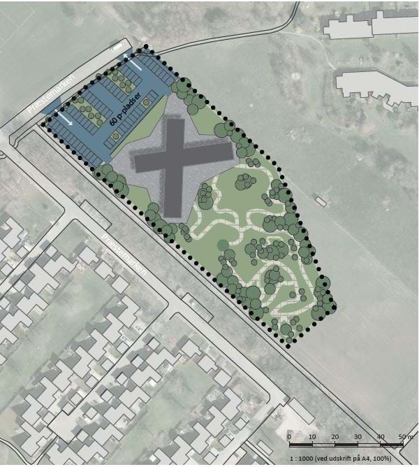 Nedenstående illustrationskort viser en projektskitse og overordnet disponering af lokalplanområdet.
