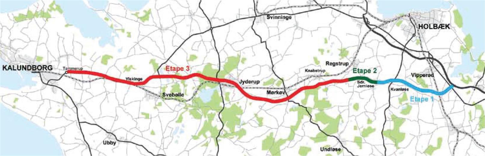Rute 23 strækning. Kilde: Vejdirektoratet 2012, VVM-undersøgelse Rute 23 Regstrup-Kalundborg