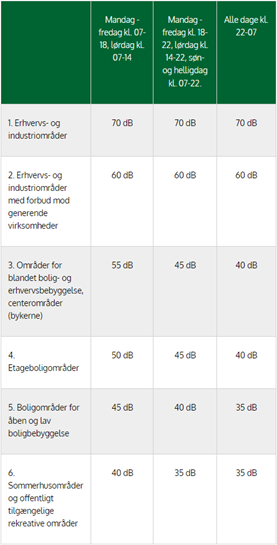 Tabel 1: Vejledende grænseværdier for støjbelastning fra virksomheder målt udendørs.