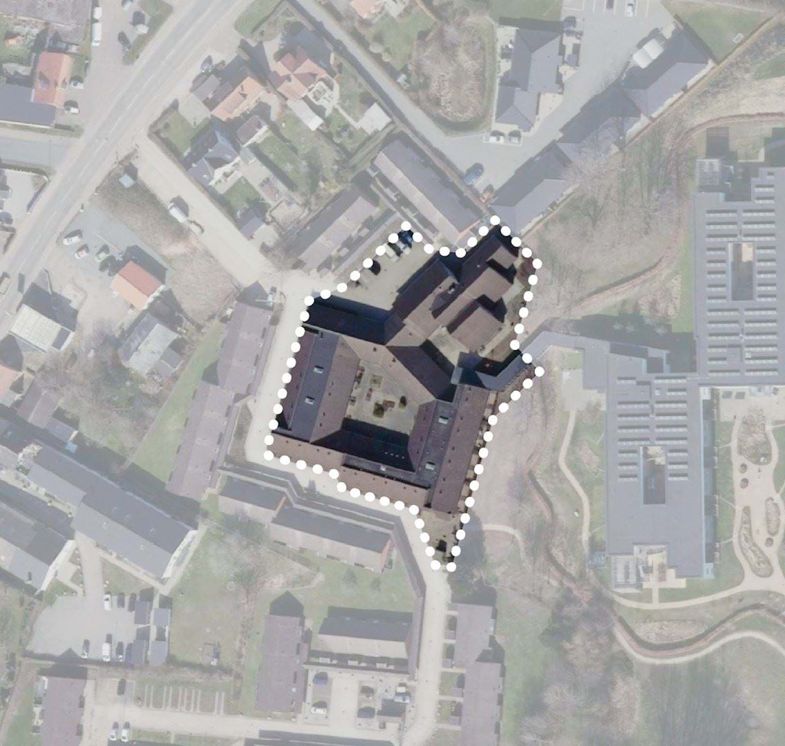 Lokalplanområdet fremstår uden større beplantning og grønne områder udover få plantekasser o. lign., hvor bebyggelsen omkranser et indre befæstet gårdrum med små forhaver til boligerne. Der er dog et større grønt område tilhørende ældrecentret mod øst, som grænser op til og er forbundet med lokalplanområdet.