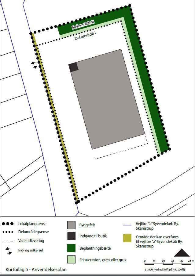 Kortbilagene herunder hører til lokalplanens bestemmelser og er juridisk bindende i forhold til de fremtidige forhold i planområdet.