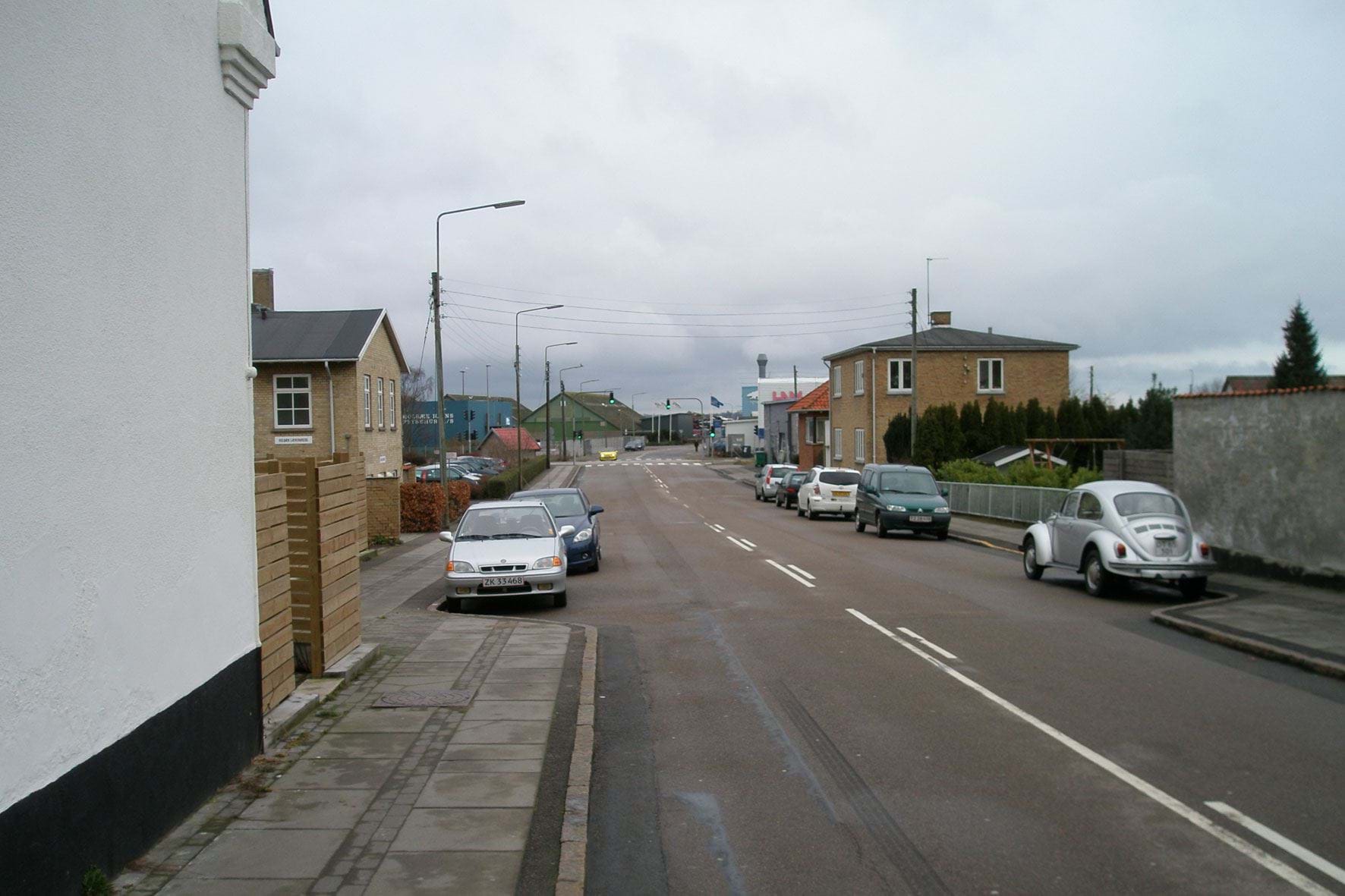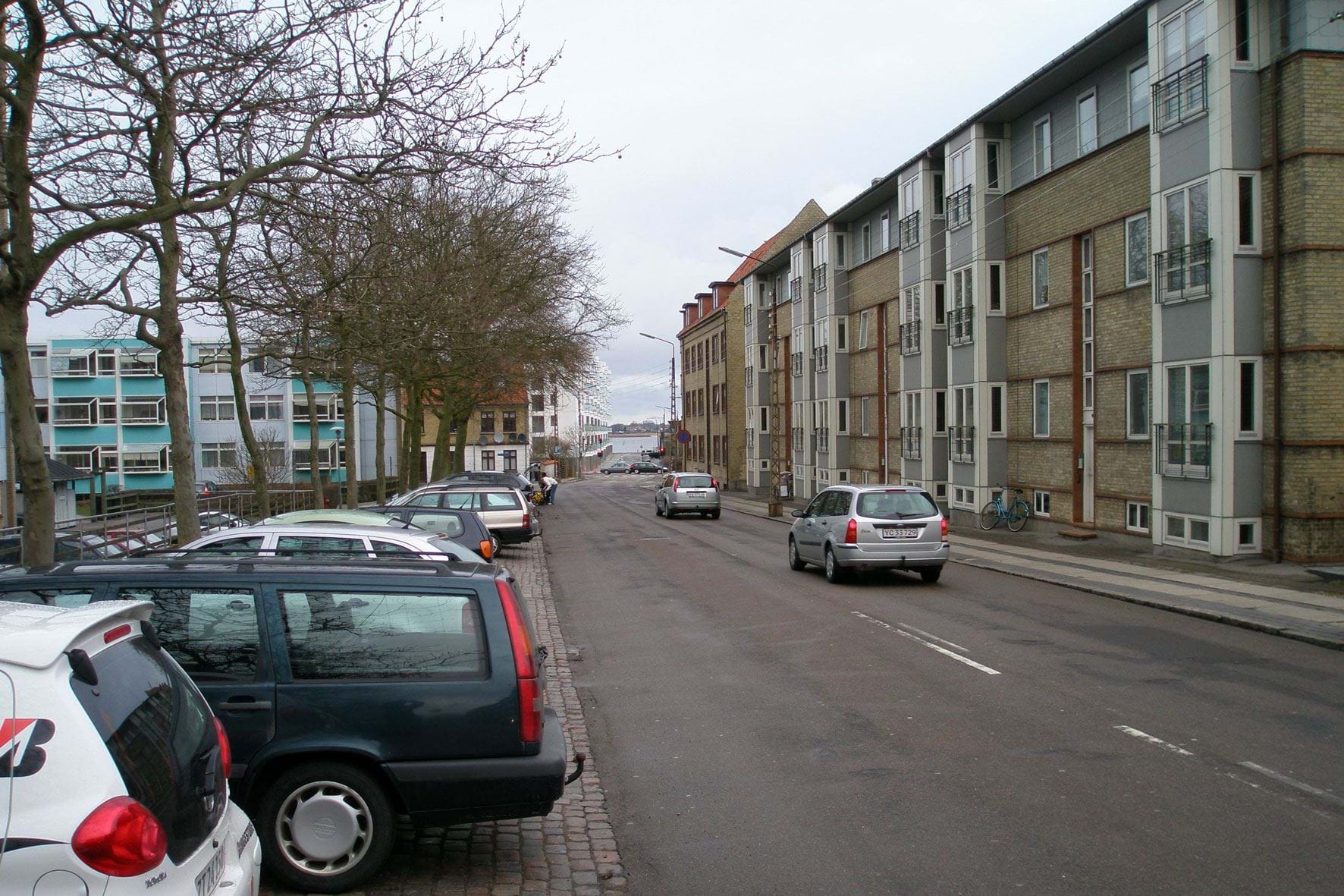 Eksisterende erhvervsbebyggelse ved Østre Havnevej blokerer visuel kontakt til fjorden