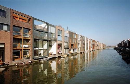 Bebyggelse kan udformes som etagehuse eller som slanke rækkehuse i 3-4 gennemgående plan. Det tilstræbes, at facaderne ved deres udformning gives underdelinger, bygningsfremspring, altaner eller på anden vis tildeles rytme og variation, så de lange facaderækker brydes. Kanalhusene i Holland eller ”Kartoffelrækkerne” ved søerne i København kan nævnes som referencebilleder, der kunne skabe inspiration til nutid fortolkning.