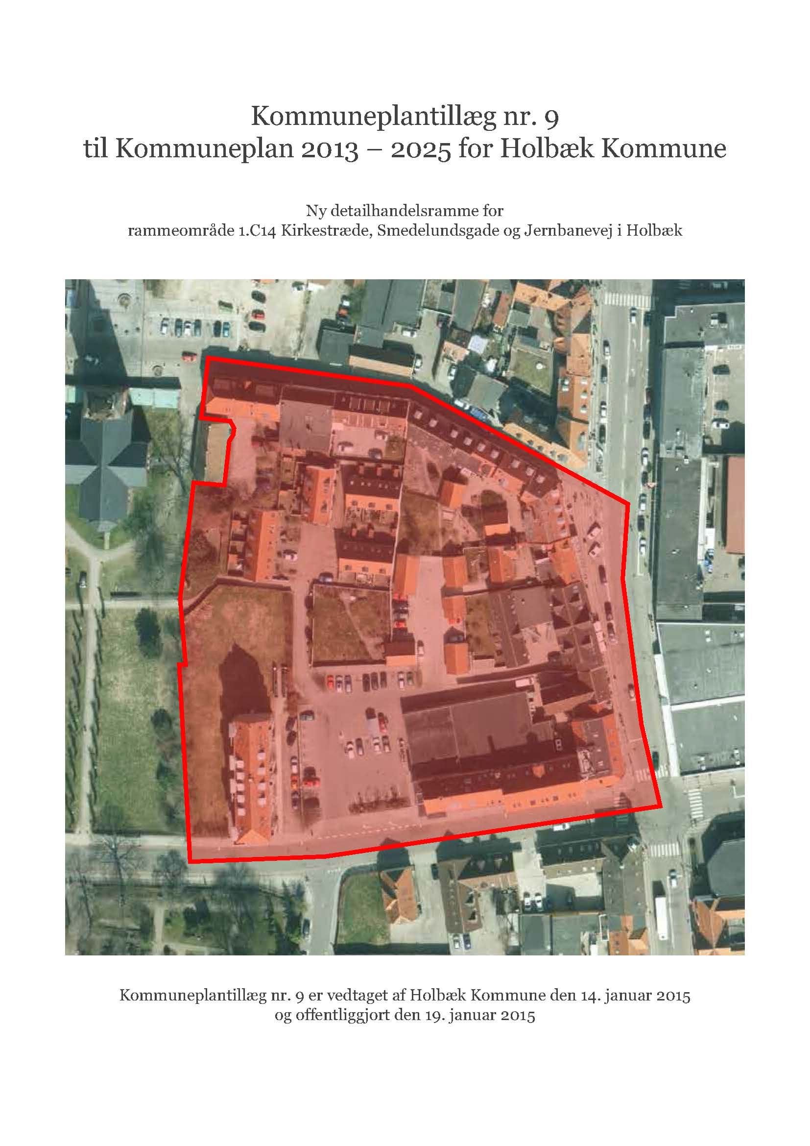 Lokalplanområdet er i Kommuneplan 2013-2025 for Holbæk Kommune omfattet af kommuneplanramme 1.C14, som udlægger området til centerområde. I centerområder kan der planlægges for boliger, pladser og grønne områder samt private og offentlige kontor- og servicevirksomheder, detailhandel, parkeringsanlæg, liberale erhverv, undervisning, institutioner, kulturelle aktiviteter, cafeer, restauranter, hotel- og konferencevirksomhed og lignende inden for miljøklasse 1 -3.
