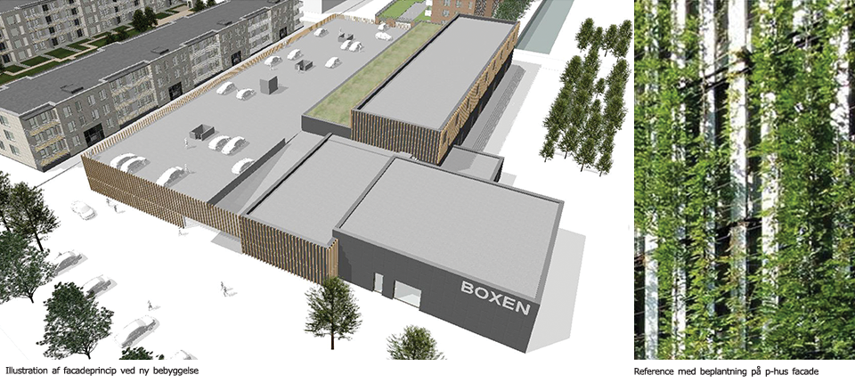 Områdets tidligere industrielle anvendelse kan danne inspirationsgrundlag for design af nybyggeri og omdannelse af de eksisterende bygninger. Den samlede bebyggelse gives med ombygningsprojektet et arkitektonisk løft, og skal medvirke til at binde den samlede bebyggelse sammen til en helhed. Parkeringshusets facader skal således fremstå som en integreret del af bygningens arkitektur, med materialer i stål, glas, mur og beton, i kombination med beplantning.