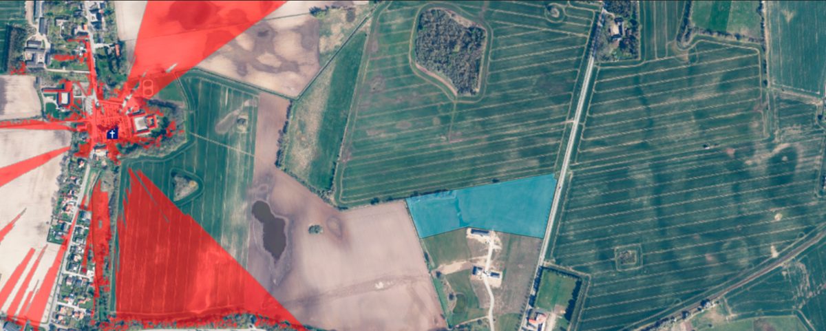 Synligheden set i 2 m's højde over terræn af Store Tåstrup Kirke, er beregnet indenfor en afstand af 3000 m fra kirken. Ved kirken forstås det, som kan ses af kirketårnet/bygningen over 10 m fra terræn.