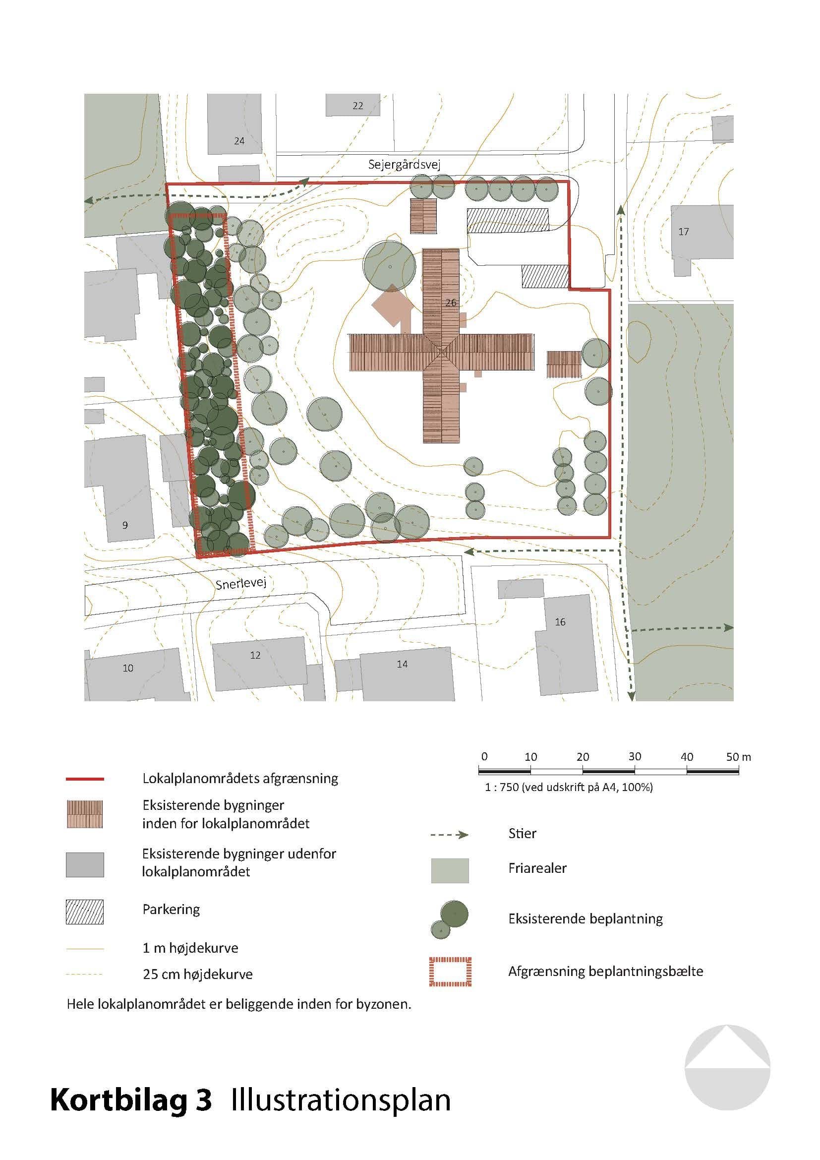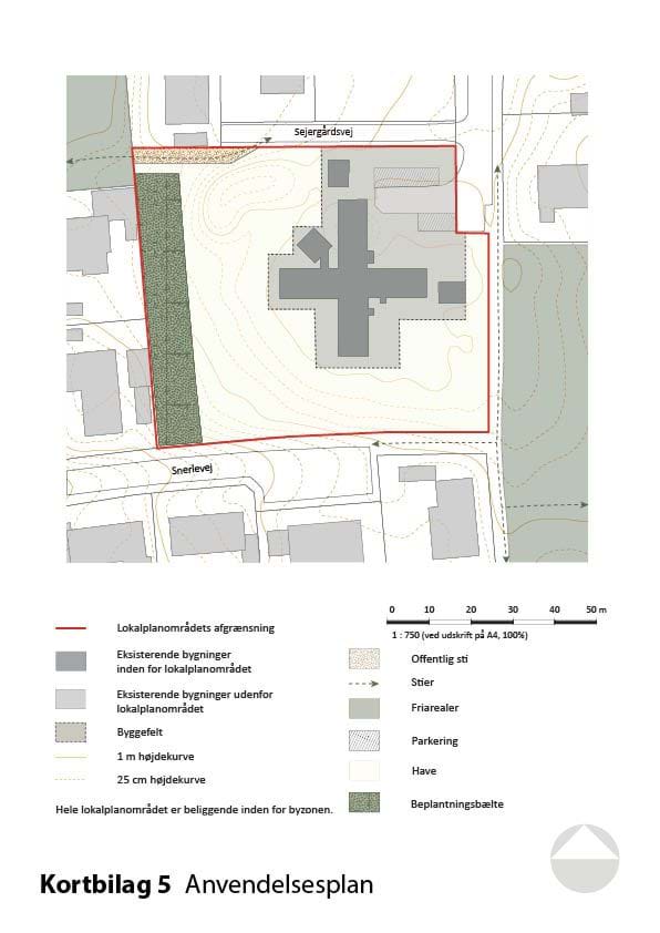 Kortbilagene herunder hører til lokalplanens bestemmelser og er juridisk bindende i forhold til de fremtidige forhold i planområdet.