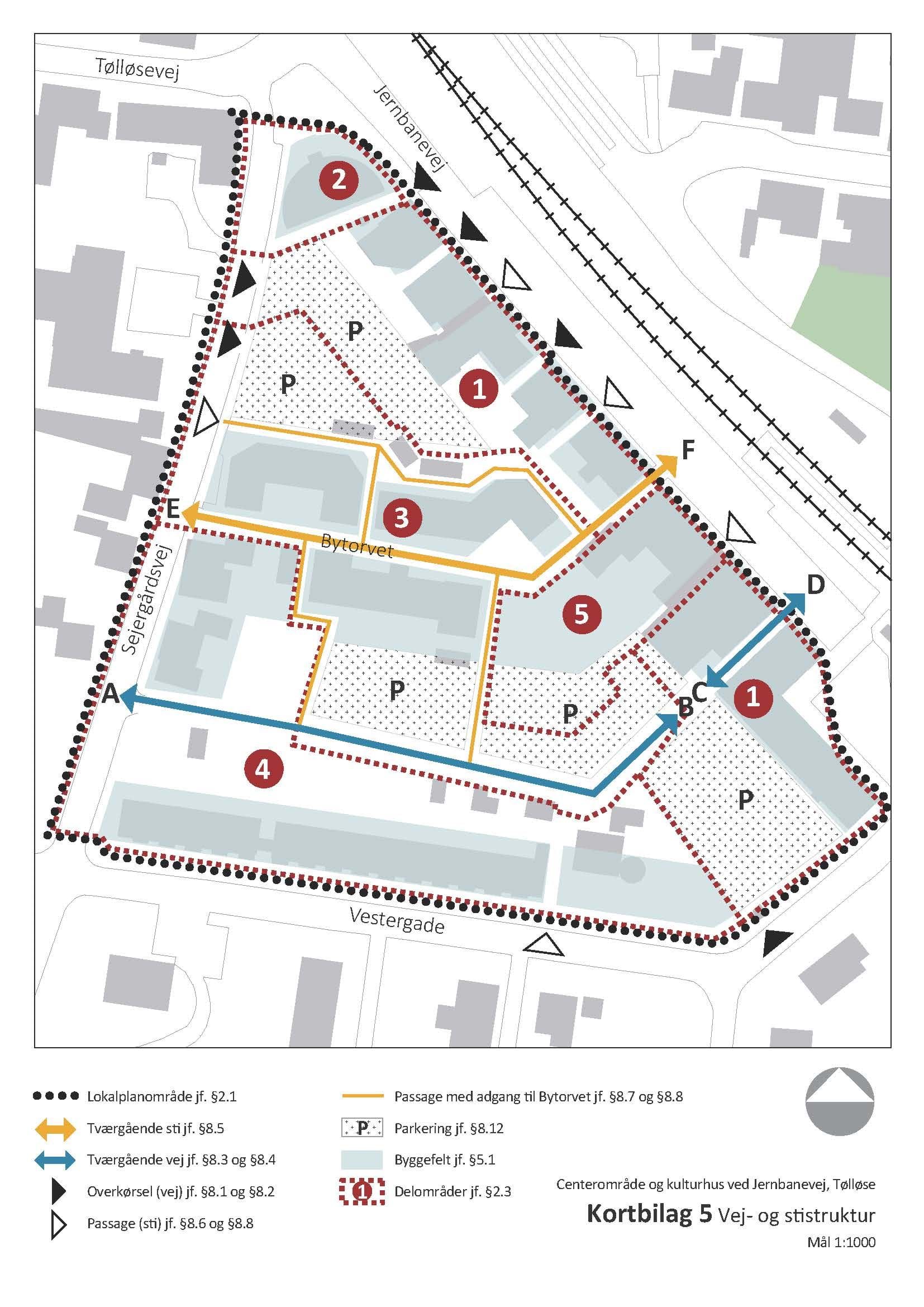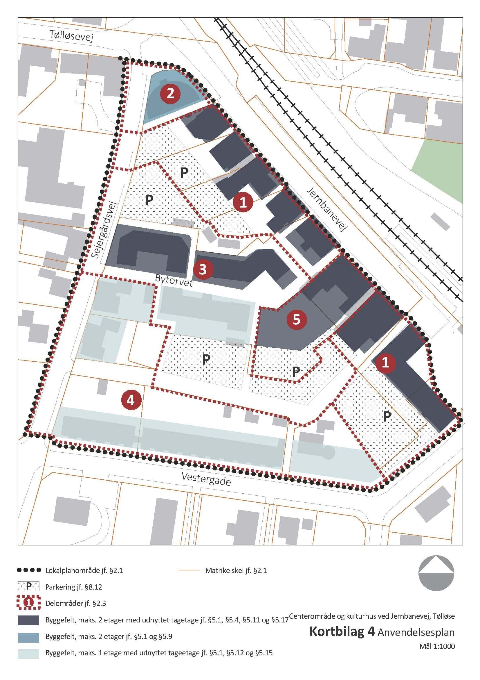 Kortbilagene herunder hører til lokalplanens bestemmelser og er juridisk bindende i forhold til de fremtidige forhold i planområdet.