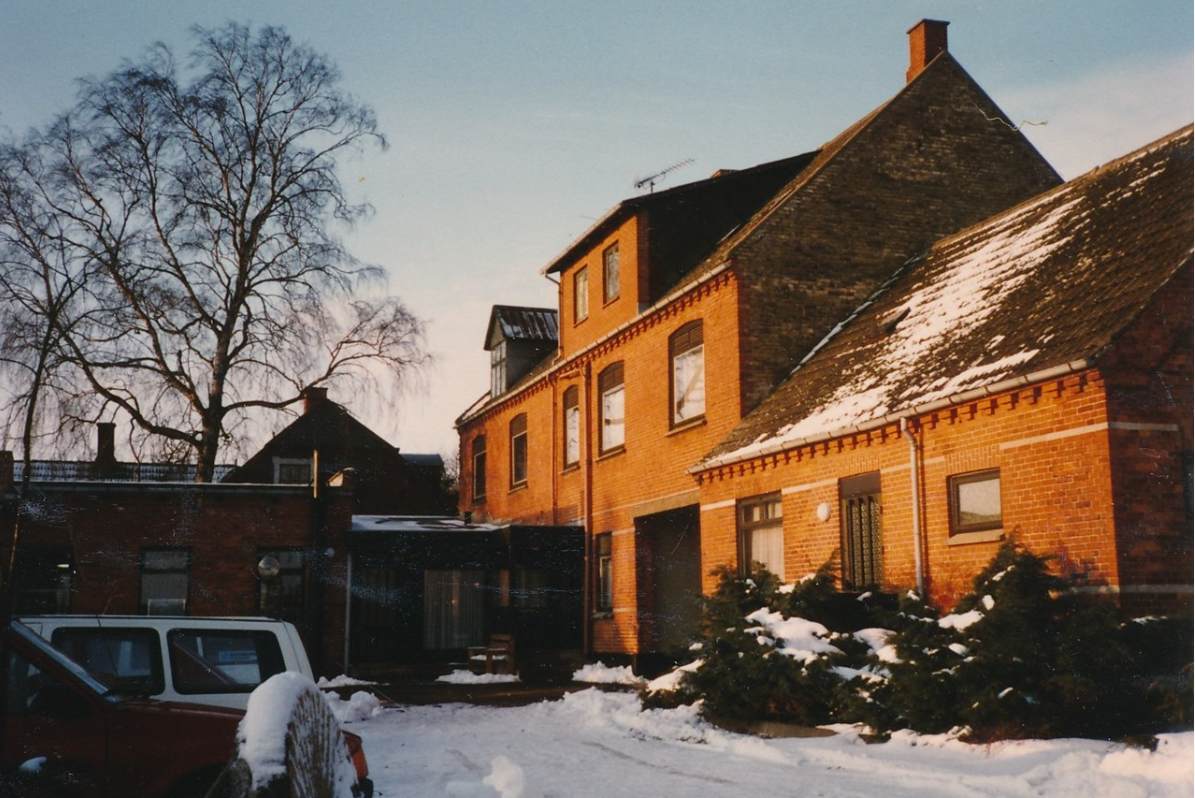 Billede af administrationsbygningen fra gården. Fra tiden, hvor der var taskekvist på taget.