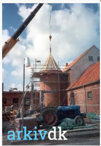 Tårnet i gården er opført i 1991 og har altså ikke været en del af bygningernes originale udtryk.
