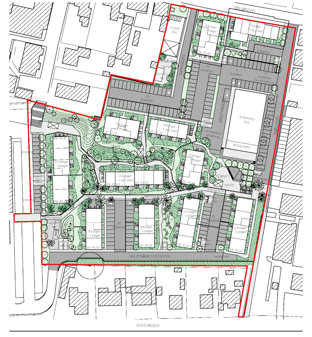 Ovenstående illustrationsplan viser en mulig disponering af området.