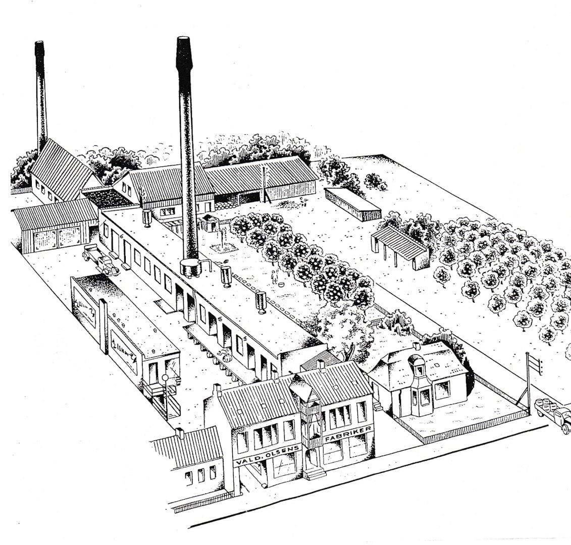 Luftfoto 1949 set fra nord; der er kommet taskekvist på administrationsbygningen.