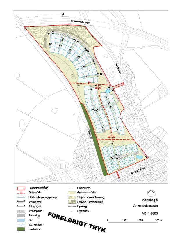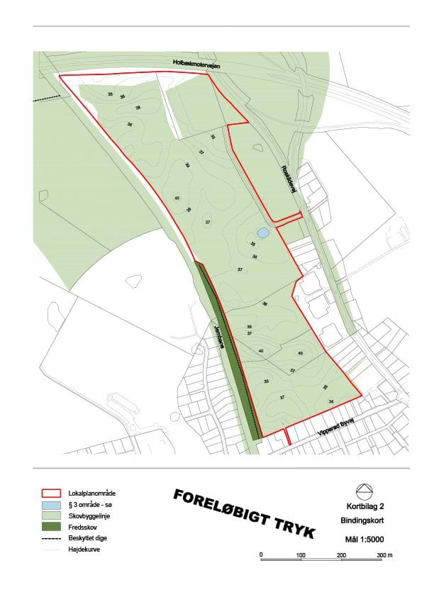 Kortbilagene herunder hører til lokalplanens bestemmelser og er juridisk bindende i forhold til de fremtidige forhold i planområdet.
