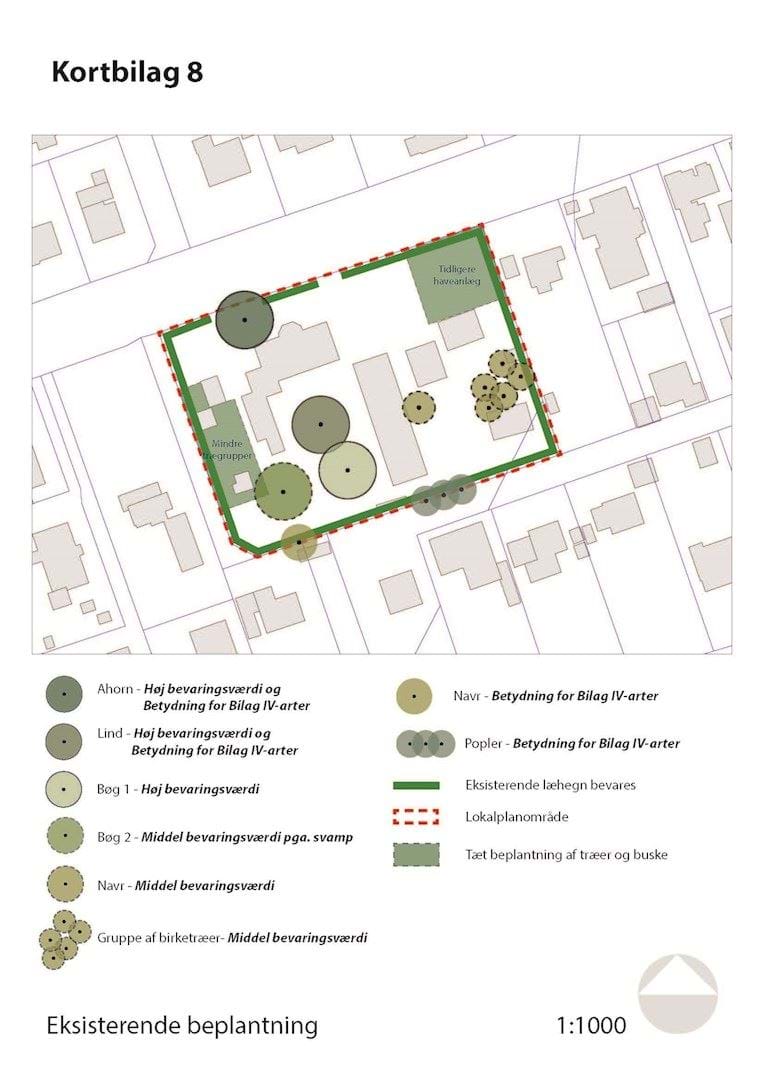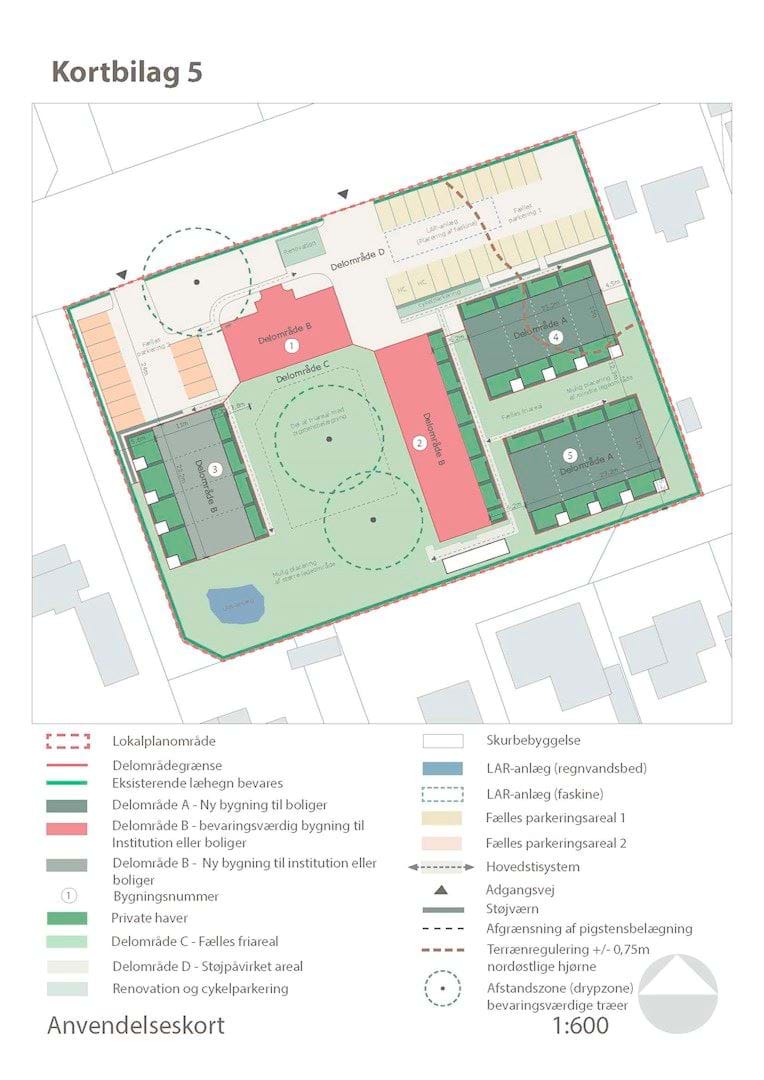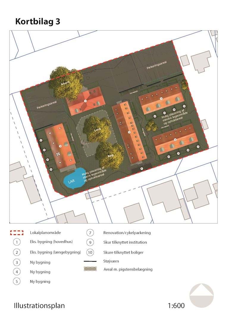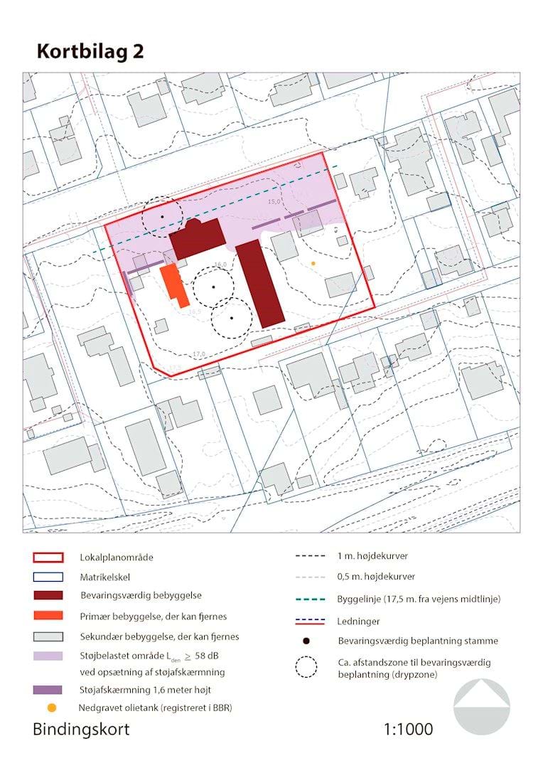 Kortbilagene herunder hører til lokalplanens bestemmelser og er juridisk bindende i forhold til de fremtidige forhold i planområdet.