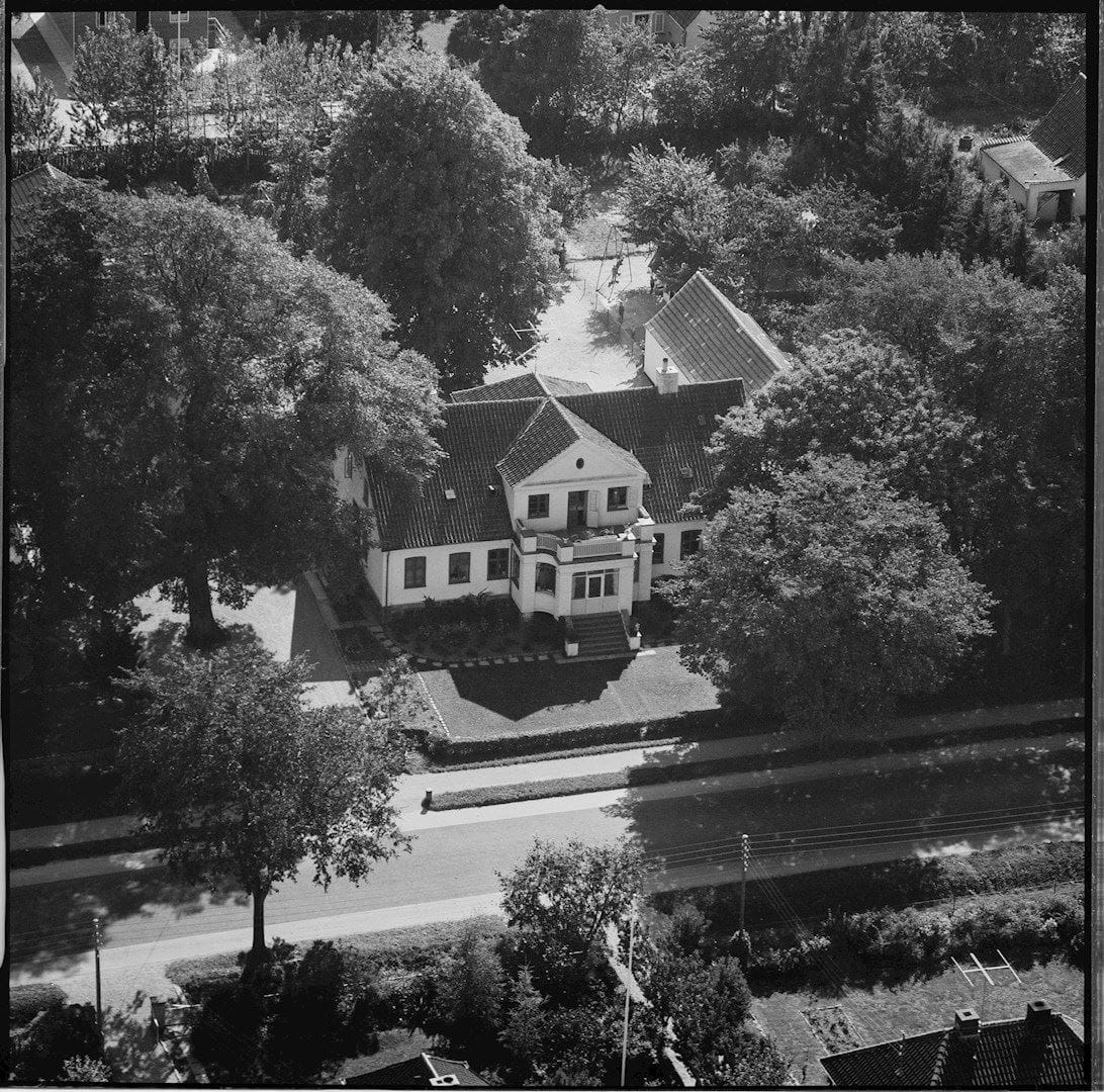 Luftfoto fra 1959 viser, hvordan ejendommen også dengang var tæt beplantet og vegetationen har været en væsentlig del af ejendommens fremtræden. På fotoet kan man bl.a. se det karakteristiske ahorntræ foran hovedhuset og lindetræet i midten af gårdspladsen.