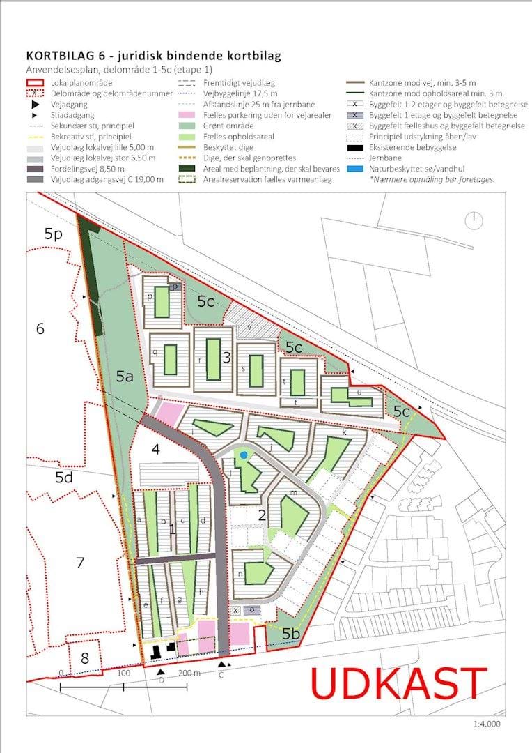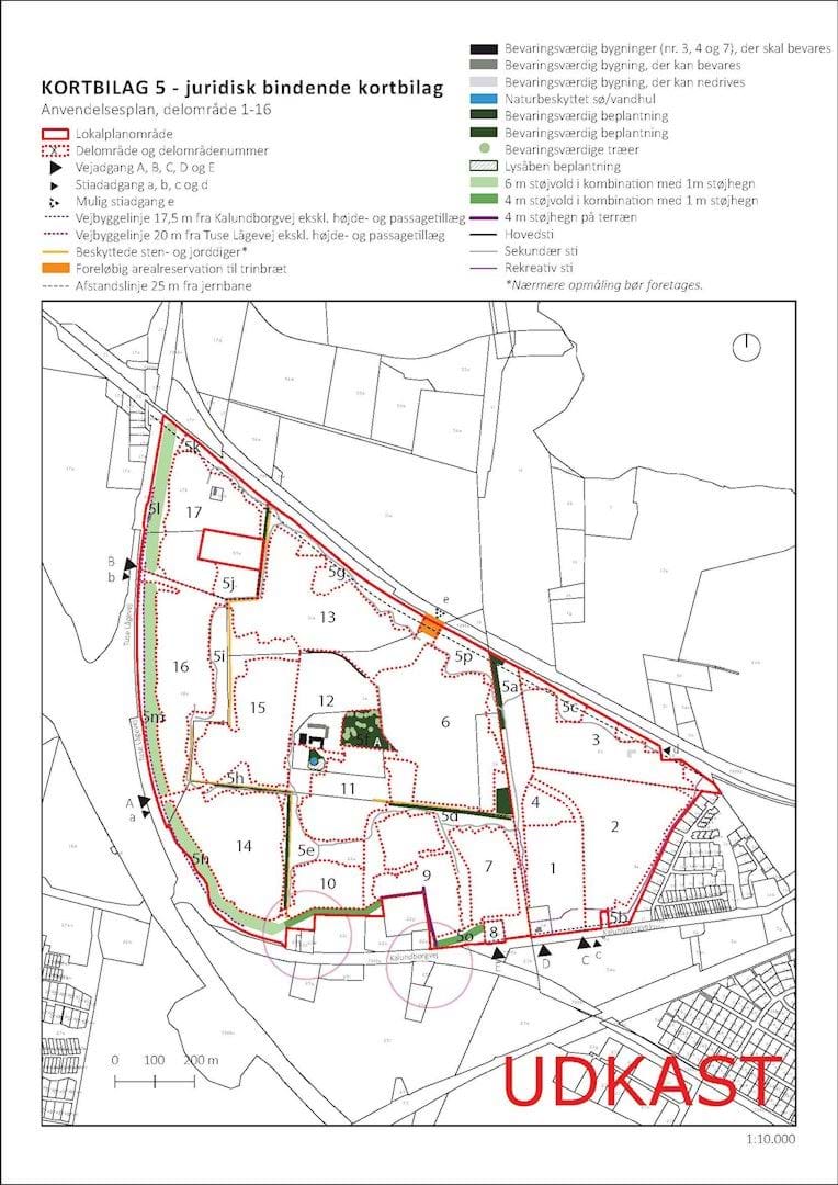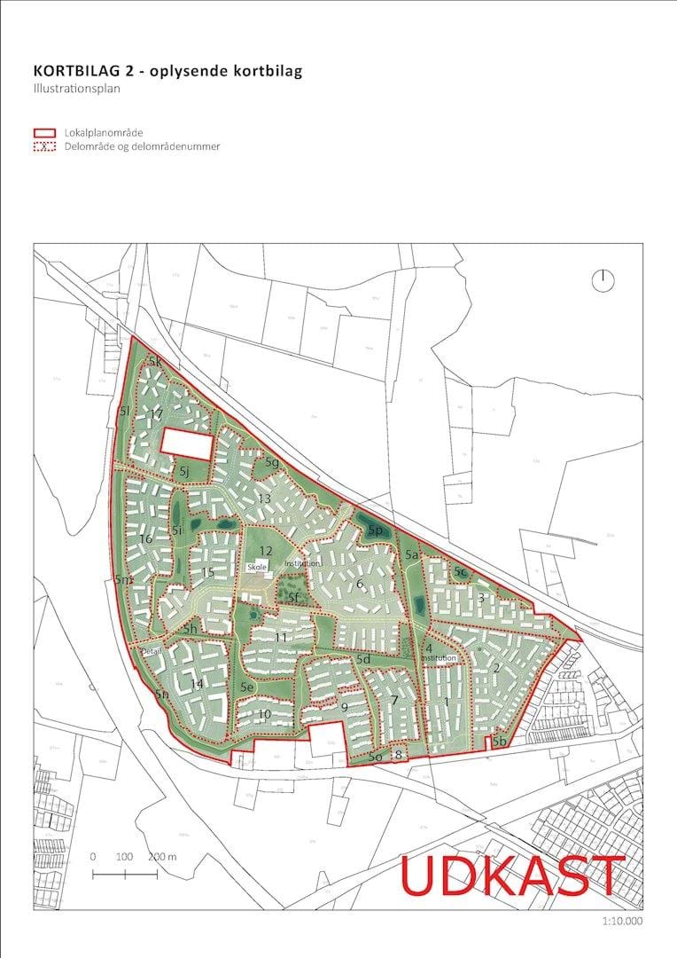Kortbilagene herunder hører til lokalplanens bestemmelser og er juridisk bindende i forhold til de fremtidige forhold i planområdet.