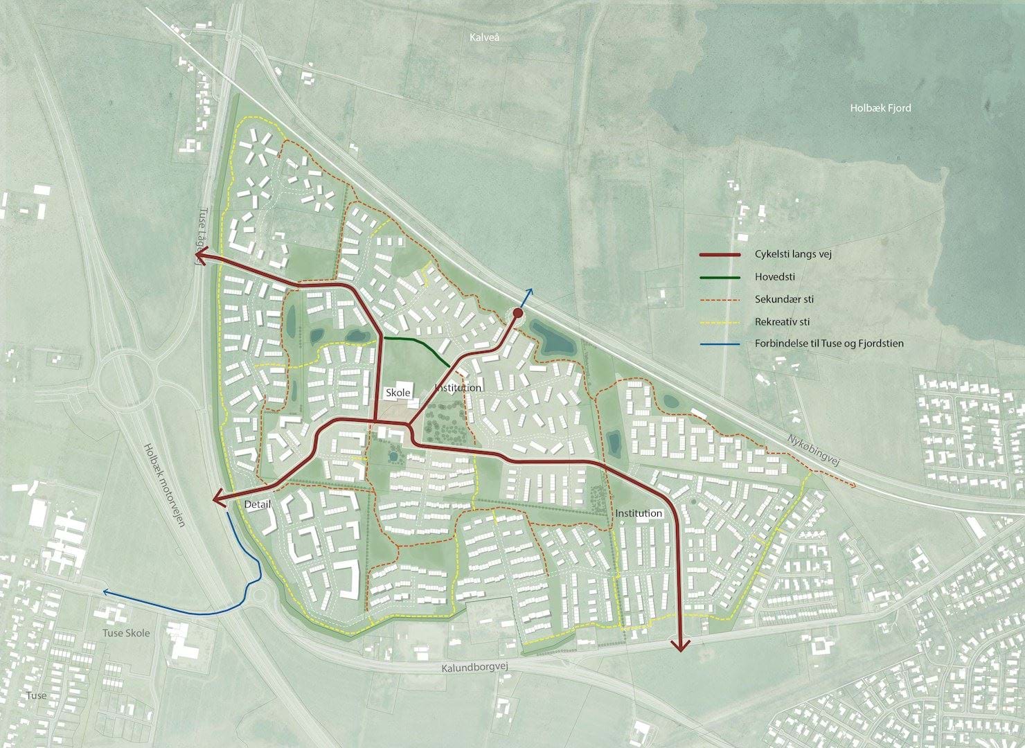 Der fastlægges i øvrigt stiadgange ved Kalundborgvej/Tuse Lågevej og en mulig stiadgang ved jernbanen, så det sikres, at områdets stier kobler sig på det omkringliggende stinet.
