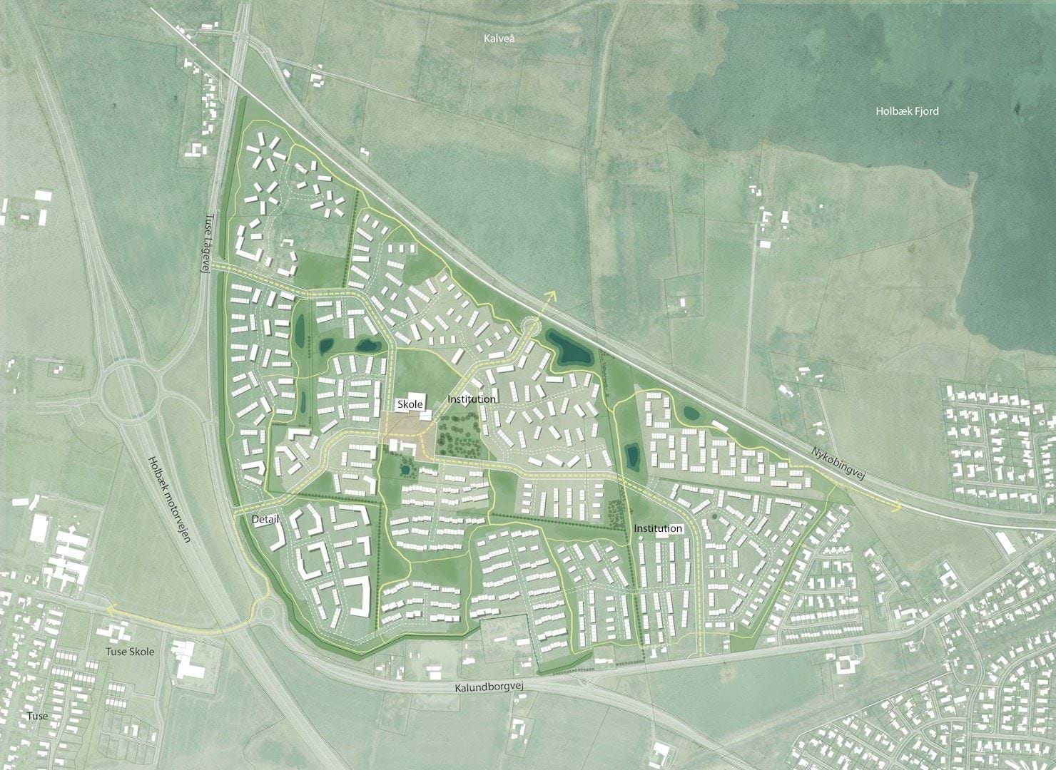 Helhedsplanens tilgang til områdets udvikling har et naturbaseret afsæt. Nærheden til fjorden dyrkes, og fjorden trækkes så at sige ind i byområdet. Områdets grønne arealer udvikles med afsæt i eksisterende beplantning, terræn og vådområder og med fokus på at skabe varierede levesteder for flora og fauna samt oplevelsesrigdom for beboere og besøgende. De sammenhængende grønne naturarealer indrettes med programmer, der indskriver sig i den vilde natur og udgør destinationer for eksisterende og nye beboere samt lokale foreninger. Programmerne organiseres, så der skabes rum for liv og aktivitet samt roligere zoner. Det tilstræbes, at bebyggede strukturer i de grønne naturområder som fx. legepladser og lignende udføres i naturlige materialer.