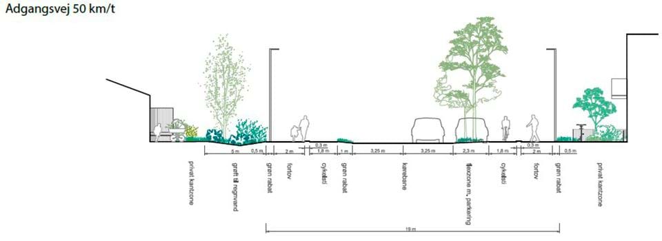 Figur 29: Vejprofil for adgangsveje med et udlæg på 19,00 m