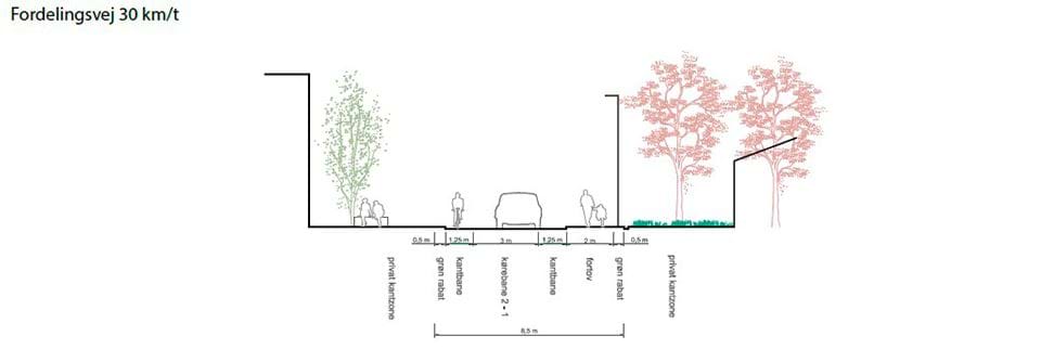 Figur 30: Vejprofil for fordelingsvej med et udlæg på 8,5 m