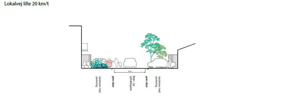 Mindre lokalveje består af en kørebane, som vist i princippet på Figur 32, og findes kun ved veje med et mindre antal boliger.