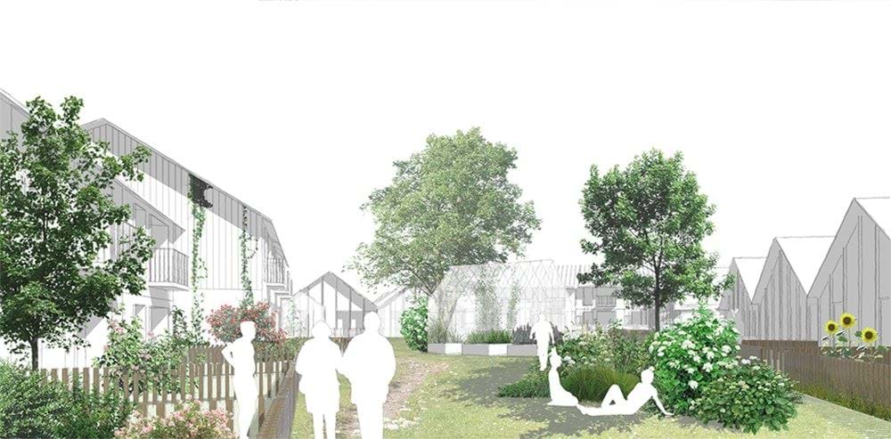 Figur 38: Visualisering der viser et eksempel på hvordan fælles opholdsarealer i delområde 2 kan tage sig ud.