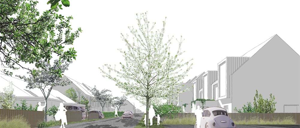 Figur 42: Visualisering der viser et eksempel på, hvordan en lokalvej kan tage sig ud i delområde 2.