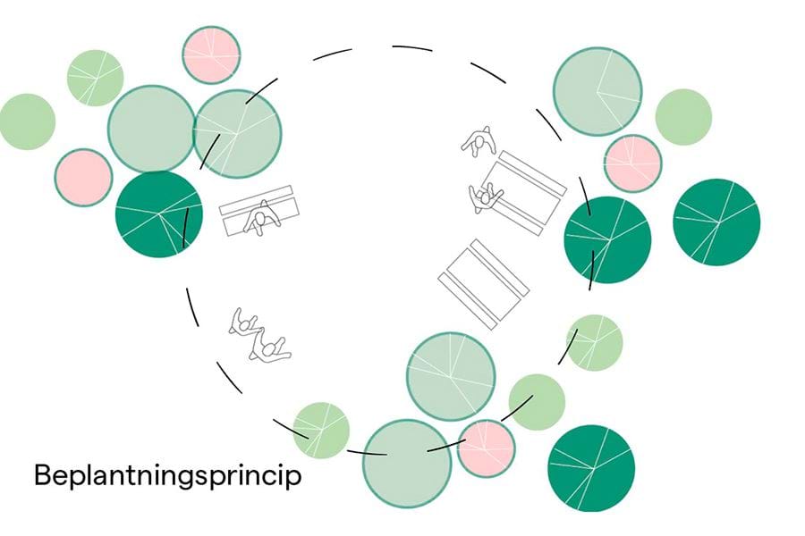 Figur 45: Beplantningsprincip på fælles opholdsarealer i delområde 2 og 3; grupper af træer.