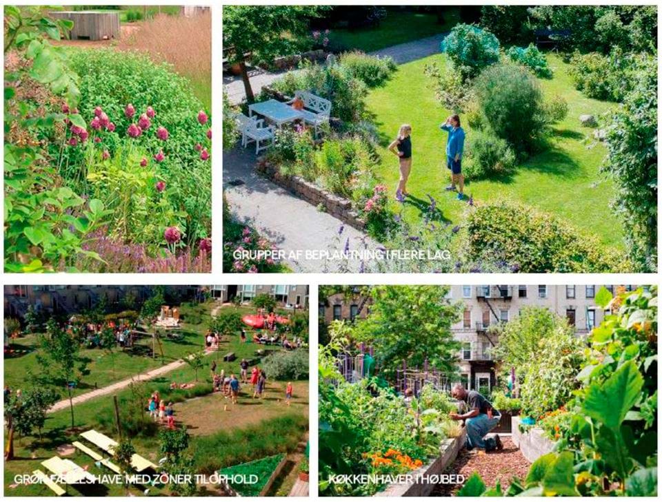 Figur 44: Eksempler på beplantning og beplantningsstrukturer på fælles opholdsarealer i delområde 1.