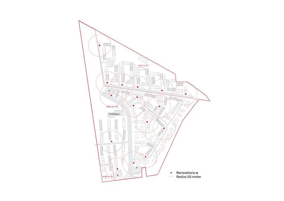 Figur 49: Princip for placering af fælles renovation i delområde 1, 2 og 3.